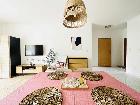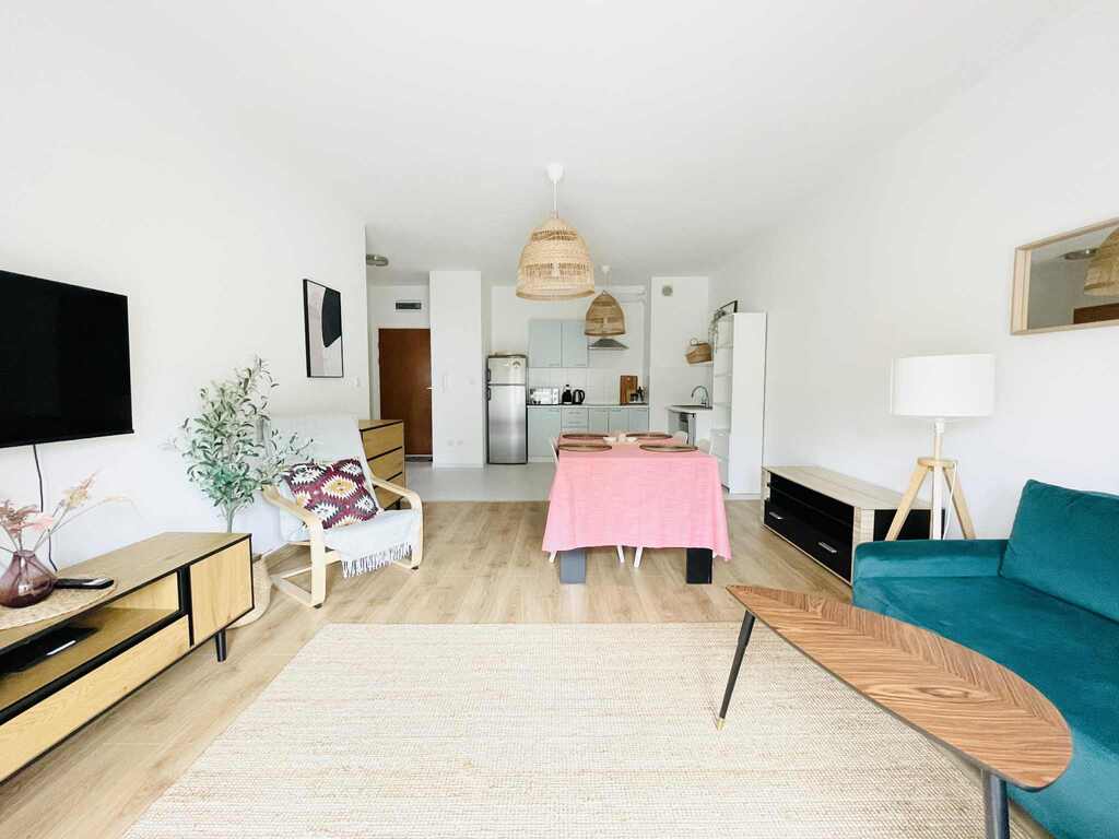 - salonu z aneksem kuchennym: w pełni wyposażony, z nową rozkładaną sofą, stolikiem kawowym, szafą, komodą, stolikiem pod TV oraz stołem z 4 krzesłami; aneks kuchenny wyposażony