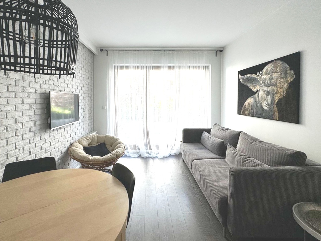 Apartament z ogródkiem i miejscem parkingowym o pow. 44 m 2 usytuowany na parterze budynku - apartamentowca.Składa się z:- pokoju dziennego z aneksem kuchennym,- 2 sypialni,- dużego przedpokoju,- łazienki z wc- ogródka - 20 m2.Wnętrze lokalu wraz z meblami zostało zaprojektowane i wykonane przez właściciela.W oferowanej cenie pozostają wszystkie meble i urządzenia, są one bardzo komfortowe i wygodne.W części dziennej lokalu zaprojektowano część wypoczynkową oraz jadalnianą ze stołem dla 4 osób.W przedpokoju szafa w zabudowie.Kuchnia w pełni wyposażona w gustowne meble w zabudowie oraz sprzęt AGD: lodówkę, zmywarkę.Pozostaje również: Telewizor i pralka.Dwie sypialnie to ustawne pomieszczenia, w których znajduje się podwójne łóżko, komody oraz tapczanik dla małych gości domu.Z pokoju dziennego można wyjść na piękny ogródek - 20 m2.Budynek jest ogrodzony, objęty całodobową ochroną, bardzo zadbany i czysty.Do apartamentu można się przemieścić wygodną klatką schodową.Do budowy obiektu użyto dobrych materiałów, które nie ulegają zużyciu.Do lokalu przynależy miejsce postojowe w garażu podziemnym.Miesięczny czynsz administracyjny około 700 złOpłata pokrywa zaliczki na ogrzewanie, wodę, opłatę za miejsce postojowe.Dodatowe opłaty: prąd wg zużycia.Gotowe do zamieszkaniaCena : 3.000 PLNKaucja gwarancyjna: 4.000 złZapraszamy na prezentację.*powyższe informacje zostały sporządzone na podstawie oświadczeń i nie są ofertą w rozumieniu przepisów prawa - zalecamy ich osobistą weryfikację.