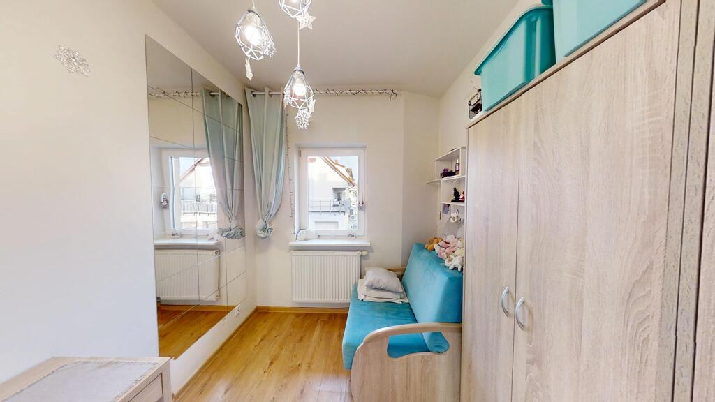 Obejrzyj mieszkanie nie wychodząc z domu! Zapraszamy do obejrzenia wirtualnej prezentacji!Do sprzedaży 3-pokojowe mieszkanie (z opcją przywrócenia układu 2-pokojowego) znajdujące się na I piętrze ocieplonego budynku z 2009r. Mieszkanie zlokalizowane na zamkniętym i monitorowanym osiedlu, z wjazdem możliwym tylko dla mieszkańców i ich gości.Powierzchnia mieszkania wynosi 49,5m2, a w jej skład wchodzą:? salon (ok. 14m2) z wyjściem na duży balkon (ok. 5,5 m2) od strony południowo-zachodniej,? dwa pokoje o pow. 7,5m2 oraz 6m2,? łazienka (ok. 4m2)z wanną,? widna, oddzielna kuchnia z zabudową meblową na wymiar,? przedpokój, z zabudową stałą we wnękach.Mieszkanie pierwotnie było dwupokojowe - w chwili obecnej przystosowane przez architekta do potrzeb rodziny 4-osobowej. Jeden z pokoi został przedzielony lekką ścianką z płyt g-k, niewielkim nakładem kosztów można powrócić do stanu pierwotnego. Mieszkanie zaprojektowane z dbałością o ergonomię i zachowanie poczucia przestronności: w korytarzach szafy, wykorzystujące całą wysokość pomieszczeń, aranżacja kuchni oparta na wygodnym systemie szufladowym. Specjalnie zaprojektowany układ ścian mieści z jednej strony biblioteczkę, z drugiej - szafę gospodarczą.Usytuowanie wedle stron świata zapewnia dobre doświetlenie: salon, balkon i kuchnia od strony południowo - zachodniej (widok na zieleń); pokoje dziecięce od strony północno - wschodniej (widok na osiedle - duża odległość od sąsiednich bloków). Łazienka w środku mieszkania, bez okna. Miejsce na pralkę w szafie gospodarczej w korytarzu przy łazience.Na podłogach w mieszkaniu panele o wysokiej klasie ścieralności, w kuchni - płytki ceramiczne. Wysokość pomieszczeń - 259 cm. W klatce budynku znajduje się sześć mieszkań. Klatka schodowa szeroka, dwubiegowa ze spocznikiem. W mieszkaniu przyłącze 380 V - możliwość przyłączenia płyty indukcyjnej. Mieszkanie bardzo ciepłe.W odległości piętnastu minut spacerem zagajniki i pola, w pobliżu obiekty użyteczności publicznej:? gminny teren rekreacyjny z placem zabaw dla dzieci, siłownią zewnętrzną i pumptrackiem - 5 minut pieszo,? Stokrotka, Biedronka, Żabka, lodziarnia, kebab, apteka - 4 minuty pieszo;? przychodnia medycyny rodzinnej - 10 minut pieszo;? szkoła podstawowa - 12 minut pieszo;? kościół - 15 minut pieszo,? w budowie - basen kryty.W pobliżu przystanki linii autobusowych 222, 225 i 227.Polecam!*powyższe informacje zostały sporządzone na podstawie oświadczeń i nie są ofertą w rozumieniu przepisów prawa - zalecamy ich osobistą weryfikację.