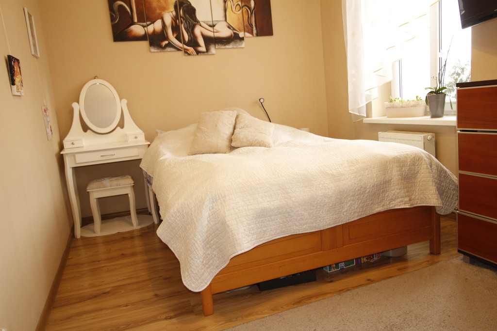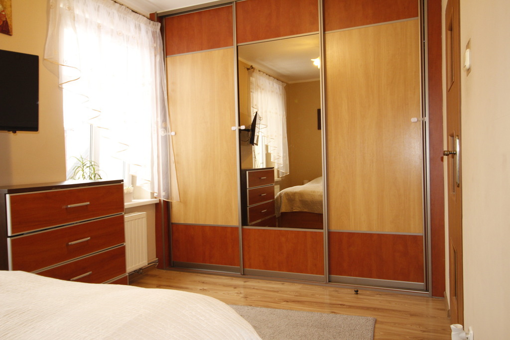 - sypialnia - przytulna i ustawna z dużą, praktyczną szafą w zabudowie, która gwarantuje mnóstwo miejsca do przechowywania;