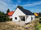 Dom wybudowany został z wysokiej jakości materiałów. Zastosowano trzyszybowe okna PCV z roletami zewnętrznymi oraz czujnikami alarmowymi, ściany wykonano z bloczków silikatowych i ocieplono styropianem grafitowym o grubości 20 cm, dach pokryty jest dachówką ceramiczną Roben, a poddasze przygotowane jest do docieplenia. Wnętrza wykończono tynkiem silikonowym, okna, rynny i dachówka są w kolorze antracytowym. Zainstalowano ogrzewanie podłogowe gazowe, które jest już uruchomione i działające, wykonano podłączenie do sieci kanalizacyjnej, rozprowadzono instalacje pod alarm, monitoring, domofon oraz bramę wjazdową. Garaż wyposażony jest w bramę automatyczną. Wykonana została instalacja deszczowa z możliwością zagospodarowania wody do podlewania ogrodu lub oczka wodnego.