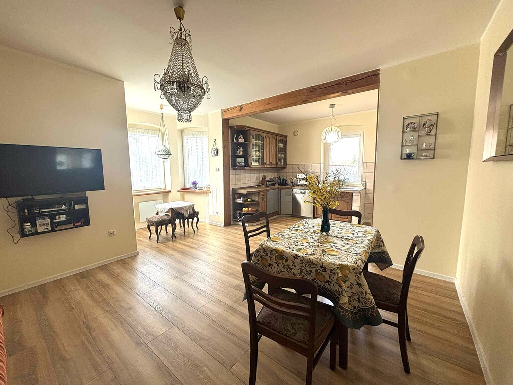 Oferujemy na sprzedaż piękny i klimatyczny dom z duszą położony w miejscowości Dębogóra oddalonej od Gryfina około 12 km, odległość do Szczecina około 30 km, do granicy państwa około 30 km.Oferowany budynek to dom wolnostojący z początku XX wieku , częściowo podpiwniczony, parterowy z poddaszem użytkowym (do adaptacji).Budynek o powierzchni użytkowej 141,59 m2, posadowiony na działce o pow. 616 m2, do której bezpośrednio przylega działka o pow. 1885 m2 zabudowana budynkiem gospodarczym. Przedmiotem niniejszej oferty są dwie nieruchomości o łącznej powierzchni 2501 m2.Stan techniczny i układ funkcjonalnyBudynek w bardzo dobrym stanie technicznym gotowy do zamieszkania bez potrzeby ponoszenia dodatkowym kosztów.Pokrycie dachowe ceramiczne, okna trzyszybowe (wymienione w zeszłym roku) , wymieniona instalacja elektryczna i wodnokanalizacyjna, ocieplenie budynku od wewnątrz.Niespełna 3 lata temu na parterze budynku przeprowadzono remont- wymienione zostały podłogi, odświeżone ściany, łazienka została wykończona w nowej glazurze i terakocie, sanitariaty dobrej klasy.Powierzchnia użytkowa parteru wynosi 73, 56 m2 i składa się z pokoju dziennego z aneksem kuchennym (łączna pow. około 30 m2), przedpokoju (7,82 m2) dwóch sypialni (14,91 i 13,28 m2), łazienki z wc (5,49 m2) i praktycznego pomieszczenia gospodarczego pralni (2,34 m2) które znajduje się przy łazience.Poddasze do adaptacji, powierzchnia użytkowa po adaptacji 68,03 m2. Został sporządzony projekt budowlany, który Właściciel może przekazać Nabywcy. Zgodnie z projektem na tym poziomie zaplanowano trzy pokoje o pow. 9,98 m2, 22,44 m2, 26,18 m2 i korytarz 9,93 m2.Ogród i mediaDziałka płaska, ogrodzona, częściowo zagospodarowana, pozostaje jeszcze sporo miejsca na realizacje wymarzonego ogrodu, wydzielenie strefy rekreacyjnej, warzywnika itd.Poza budynkiem mieszkalnym na posesji budynek gospodarczy w dobrym stanie technicznym, a także drewniana wiata na dwa samochody.Media: woda, energia elektryczna, szambo ekologiczne, zainstalowano zmiękczacz wody, ogrzewanie elektryczne, w łazience podłogowe, dodatkowo kominek.Podatek od nieruchomości 518 zlł rocznie.Informacje dodatkoweW cenie domu właściciel może pozostawić większość mebli, a także sprzęt AGD. Krótki okres wydania.W miejscowości sklep spożywczy, przystanek autobusowy, autobus szkolny. W bliskiej okolicy bardzo ładne tereny spacerowe, oraz pozostałości dawnego majątku, który w XVIII wieku należał do Fryderyka Wilhelma von Hohenzollerna.Polecamy i zapraszamy na prezentacje.*powyższe informacje zostały sporządzone na podstawie oświadczeń i nie są ofertą w rozumieniu przepisów prawa - zalecamy ich osobistą weryfikację.