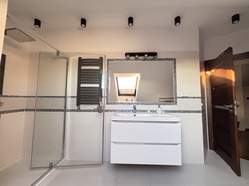 - sypialnia główna z wyjściem na balkon z widokiem na ogród, z indywidualną dużą łazienką z wanną i prysznicem