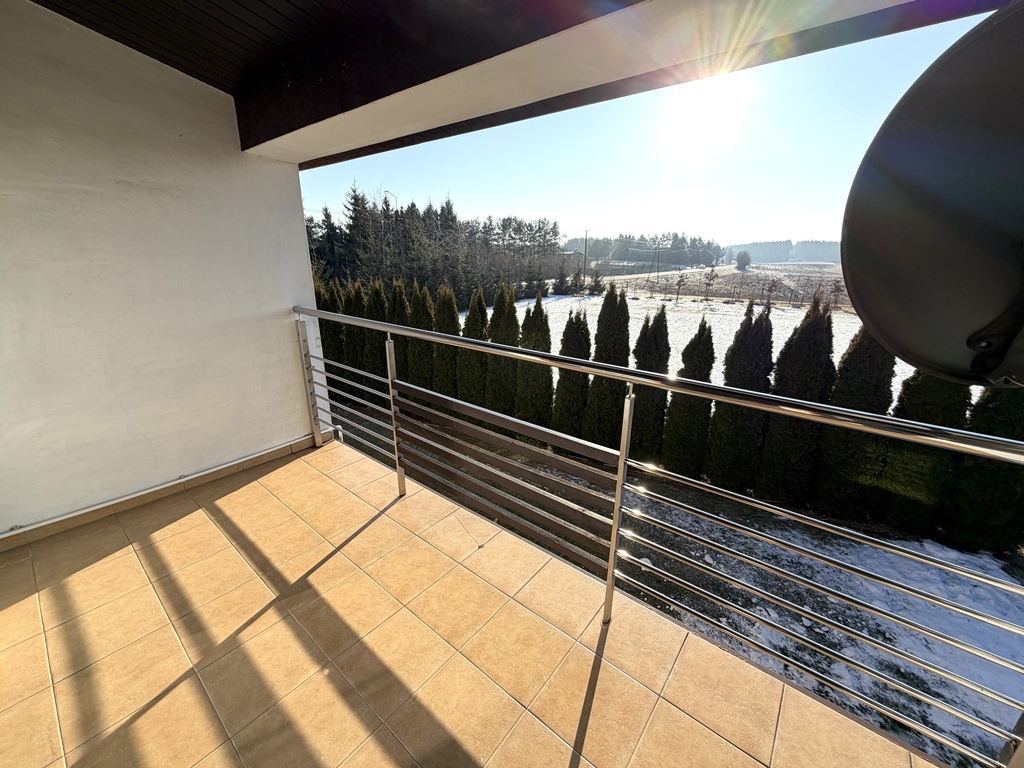 - słoneczne wnętrza i balkon z widokiem na zieleń