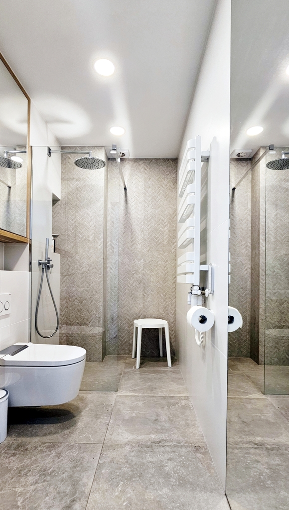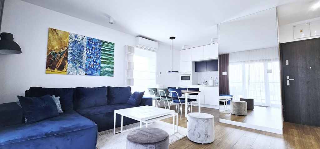 Apartament jest nowocześnie wykończony i wyposażony (, z przestronną łazienką oraz kompletnie wyposażonym i umeblowanym aneksem kuchennym . Ogrzewanie i gorąca woda są z sieci i ich koszty wliczone są w czynszu. Dodatkowym atutem jest klimatyzacja.