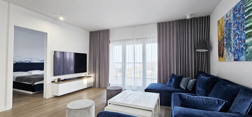 Sprzedam apartament o pow. użytkowej 44,39m2. Apartament usytuowany jest w nowoczesnym, komfortowym apartamentowcu z 2019r z windą zjeżdżającą do poziomu garażu w pierwszej linii zabudowy od morza). Kompleks budynków jest dostępny jedynie dla mieszkańców, ogrodzony i stale monitorowany. Do dyspozycji mieszkańców jest plac zabaw dla dzieci, tereny zielone. Apartament składa się: z eleganckiego salonu z aneksem kuchennym (24,39m2), sypialni (11,40m2), oraz łazienki /5,13m2) i przedpokoju (3,41m2). Apartament znajduje się na 3 ( ostatnim) piętrze budynku, posiada narożny taras o powierzchni 22,59m2 z widokiem na morze oraz miejsce postojowe w hali garażowej w podziemiach budynku w cenie 50000 zl.