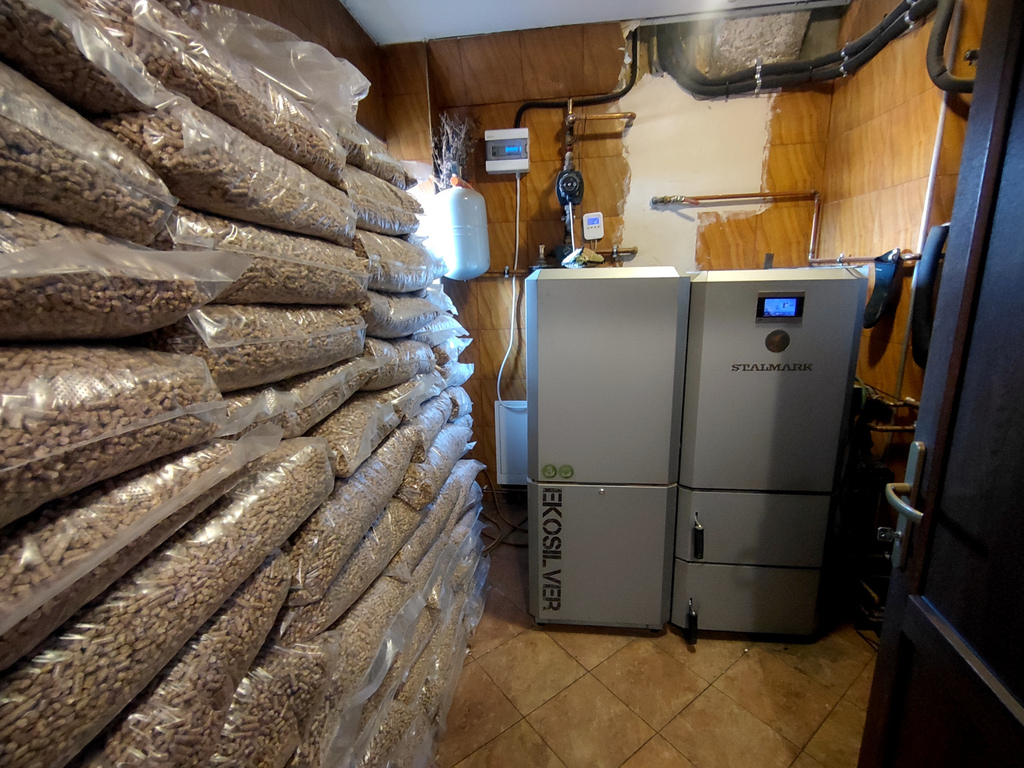 Ogrzewanie z nowoczesnego pieca na pelet z zasobnikiem (w pełni automatyczny).