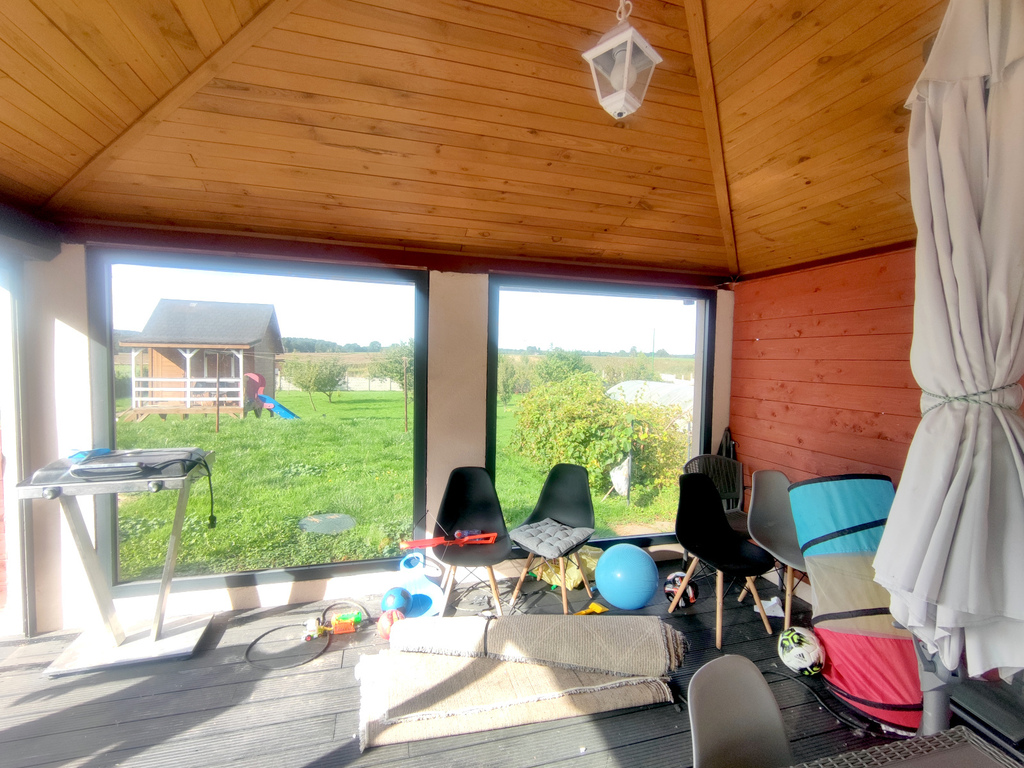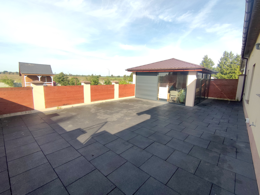 Z budynku wyjście na ogrodzony taras (71 m2) z murowaną, przeszkloną altaną (18,5 m2).