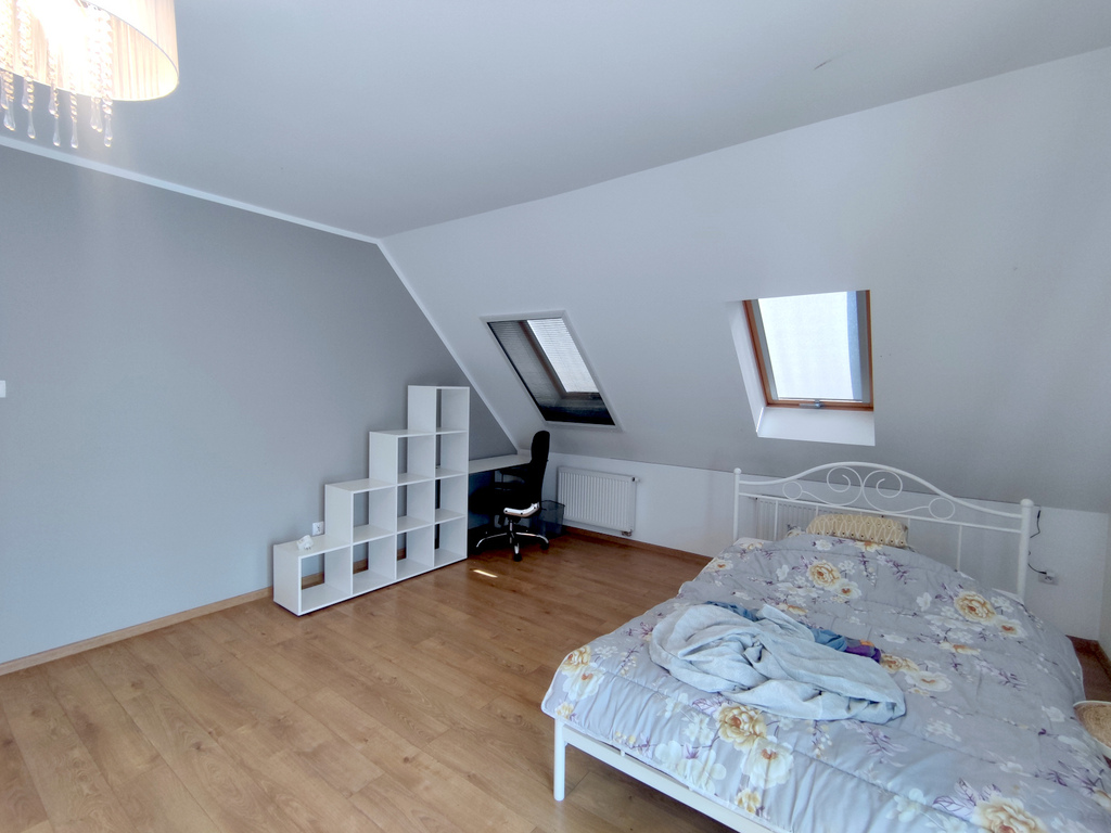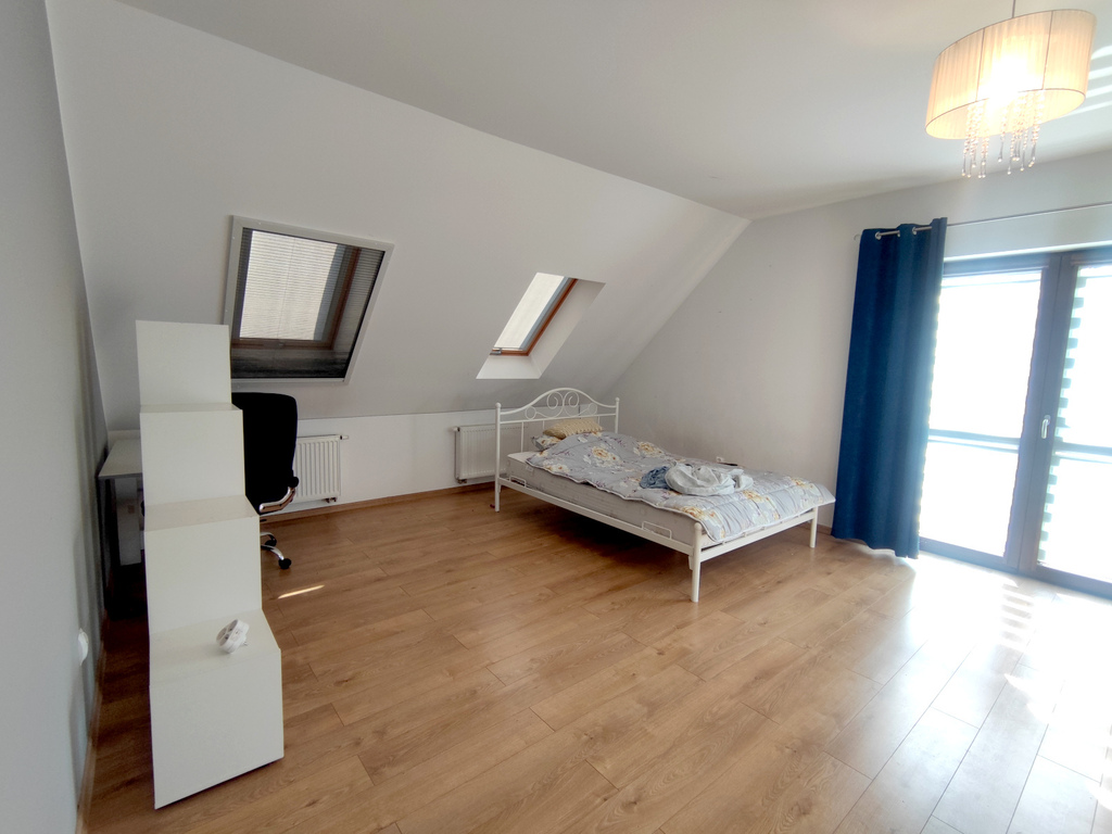 - sypialnia 1 (32,3) z garderobą i schowkiem oraz wyjściem na duży taras nad garażem,