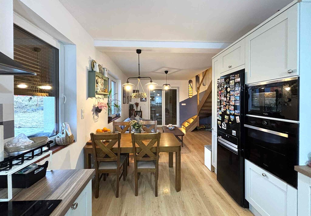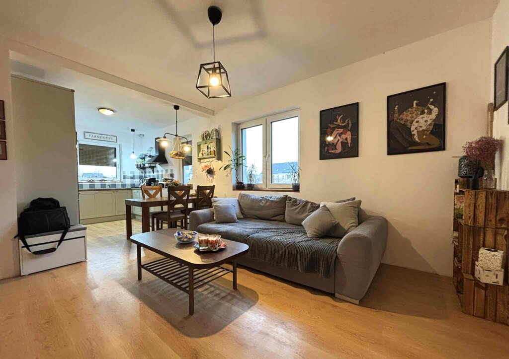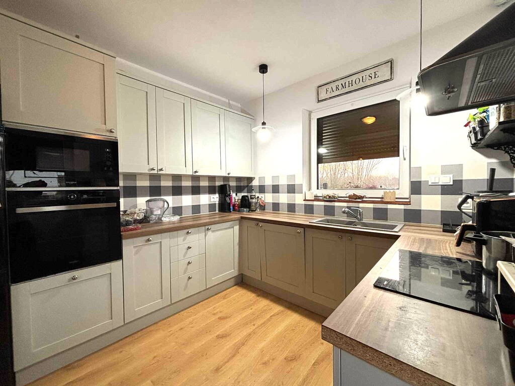 Ofertą sprzedaży jest dom w zabudowie bliźniaczej zlokalizowany na cichym i kameralnym osiedlu domów jednorodzinnych w Gryfinie.Dobry i szybki dojazd do Centrum Gryfina, w pobliżu przebiega ścieżka rowerowa, w sąsiedztwie nowa zabudowa jednorodzinna.Dom idealnie sprawdzi się dla 4-5 osobowej rodziny.Specyfikacja techniczna:-budynek wybudowany w technologii tradycyjnej, oddany do użytkowania w grudniu 2021 roku,- dach - dachówka ceramiczna- drzwi wejściowe antywłamaniowe,- okna i drzwi balkonowe, - trzyszybowe --ogrzewanie domu oraz ciepła woda z pompy ciepła( (ogrzewanie podłogowe w całym budynku )Układ funkcjonalny:Powierzchnia użytkowa oferowanego domu wynosi 93,67 m2, powierzchnia działki do wyłącznego użytku wynosi 572 m2.Na parterze oferowanego domu znajduje się otwarta strefa dzienna, na którą składa się hol, kuchnia i salon.Część wypoczynkową salonu powiększa taras. Atutem kuchni jest optymalny i wygodny układ funkcji, zapewniający komfort podczas przygotowywania posiłków. Na granicy kuchni i salonu wygodna część jadalniana, w której znajduje się stół. Z salonu wejście na poddasze drewnianymi lekkimi schodami, które z całą pewnością są ozdobą tej części domu.Dostępny z holu pokój to ustawna, jasna sypialnia (lub gabinet), obok niej mieści się łazienka z prysznicem. Kotłownia dostępna z wiatrołapu, można w niej zorganizować pralnię.Poddasze ustawna i komfortowa strefa nocna domu, na którą składają się trzy spylanie oraz łazienka z wanną. Nad poddaszem praktyczny strych.Powierzchnie poszczególnych pomieszczeń :PARTER :- Wiatrołap 3,35 m2- Hol 4,18 m2- Kuchnia 9,80 m2- Salon 16,08 m2- Pokój 10,37 m2- Łazienka 3,35 m2- Kotłownia 4,10m2PODDASZE :- Hol i schody 7,00 m2-Pokój 9,41 m2-Pokój 11,92 m2-Pokój 8,37 m2-Łazienka 5,74 m2Standard wykończeniaPodłogi w pokojach na obydwu kondygnacjach, w kuchni- panele, ściany gładź. W wiatrołapie i w kotłowni na podłodze terakota.Łazienki wykończone w glazurze i terakocie, ta na parterze z kabina prysznicową, na poddaszu z wanną.W całym domu zamontowane rolety antywłamaniowe sterowane elektrycznie. W cenie domu pozostaje zabudowa meblowa w kuchni wraz z wyposażeniem, szafa w zabudowie w wiatrołapie.OgródPosesja ogrodzona, działka częściowo zagospodarowana, oddzielona od sąsiadów płotem. Sporo miejsca na wydzielenie strefy rekreacyjnej, warzywnika itd.Krótki okres wydania. Cena do negocjacji. Polecamy i zapraszamy na prezentacje.Chętnie udzielimy odpowiedzi na Państwa pytania na temat naszej oferty. Pomagamy w uzyskaniu kredytu na zakup nieruchomości.*powyższe informacje zostały sporządzone na podstawie oświadczeń i nie są ofertą w rozumieniu przepisów prawa - zalecamy ich osobistą weryfikację.