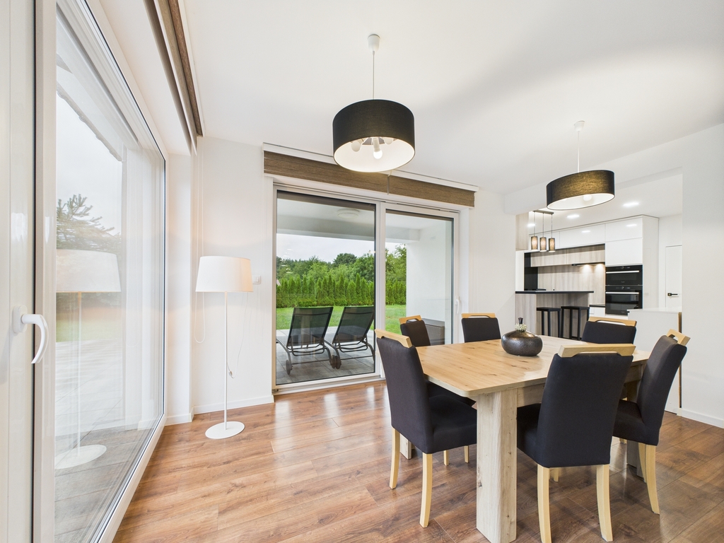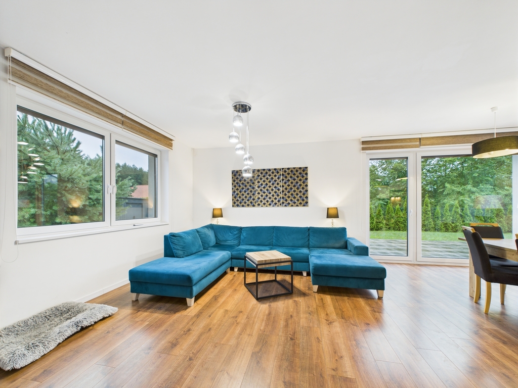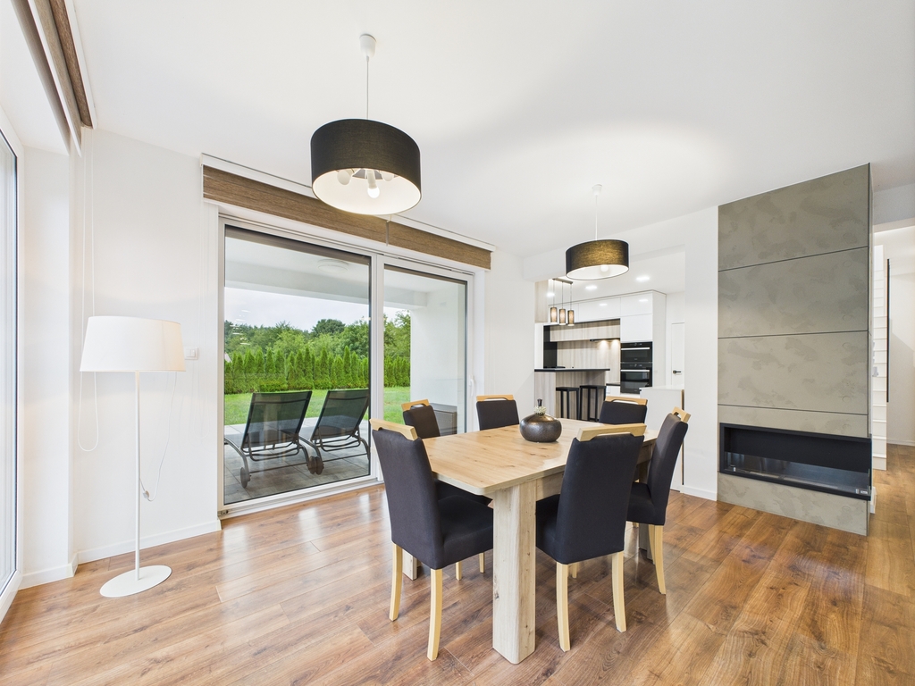 Zapraszamy do zapoznania się z ofertą wyjątkowo pięknego domu, zlokalizowanego pod samym lasem w miejscowości Jęczydół Dom wybudowany w 2019 r. na działce o powierzchni 1124 m? w kameralnej i cichej okolicy tuż obok lasu. Standard wykończenia Zaprojektowany w eleganckim i nowoczesnym stylu i wykończony z wysokiej klasy materiałów.Komfort i przestrzeń oraz poczucie prywatności - to gwarantowane w tym domu odczucia.Dom w stanie idealnym, nie wymaga ponoszenia żadnych nakładów finansowych.W cenie zostają meble w zabudowie wraz ze sprzętem AGD. Pozostałe meble do uzgodnienia. Rozkład pomieszczeń Budynek parterowy z poddaszem użytkowym.Na powierzchni użytkowej 173,97 m? - całkowitej 285,47 m? - znajdują się: Na parterze: - elegancki i przestronny salon z bio kominkiem, dużymi panoramicznymi oknami wyjściem na taras oraz ogród- jadalnia i kuchnia o łącznej powierzchni około 50 m? - wraz za meblami w zabudowie oraz sprzętem AGD- spiżarnia- łazienka z toaletą, prysznicem i oknem- wiatrołap- holl- kotłownia- garaż jednostanowiskowy Na poddaszu: - pokój (o powierzchni 13,31 m?) z garderobą (4,44 m?)- trzy pokoje (o powierzchniach 13,33 m? , 11,14 m2 i 9,85 m?)- łazienka z WC, prysznicem, wanną i oknem (9,78 m?)- dwa pomieszczenia gospodarcze (o powierzchniach 1,43 m? i 6,11 m?)- hollDodatkowo poddasze nieużytkowe idealnie nadające się do przechowywania dodatkowych rzeczy. Media: Ogrzewanie i ciepła woda z piecyka gazowegoOgrzewanie podłogowe w całym domuKanalizacjaBrama wjazdowa i garażowa otwierana pilotem. Dlaczego warto? To idealne miejsce dla osób ceniących sobie spokój i prywatność, a wnętrze idealne dla osób lubiących komfort i elegancję.Świetne położenie Do deptaka nad jeziorem Miedwie - 15 min spacerkiemNa dziką plażę - 6 min piechotą.Ok 28 min autem do centrum Szczecina (28 km)Ok 18 min do centrum Stargardu (12 km)Las i mnóstwo terenów dla koneserów sportu i rekreacji. Nie zwlekaj i umów się na prezentację!Można zakochać się w tym miejscu, a taka okazja może się więcej nie trafić. Zapraszam do kontaktu!*powyższe informacje zostały sporządzone na podstawie oświadczeń i nie są ofertą w rozumieniu przepisów prawa - zalecamy ich osobistą weryfikację.