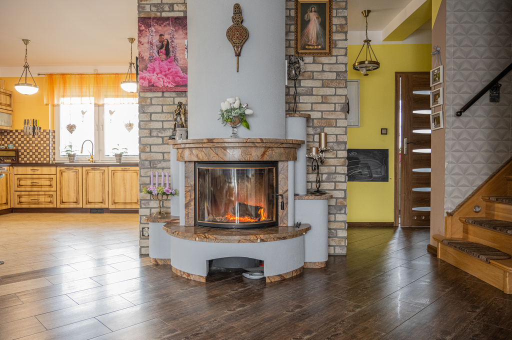 Dom w całości ogrzewany jest gazem, posiada dodatkowo kominek oraz w każdym pomieszczeniu jest ogrzewanie podłogowe.