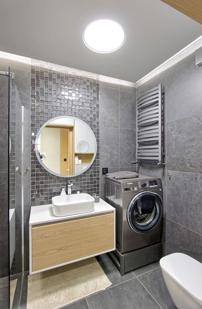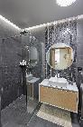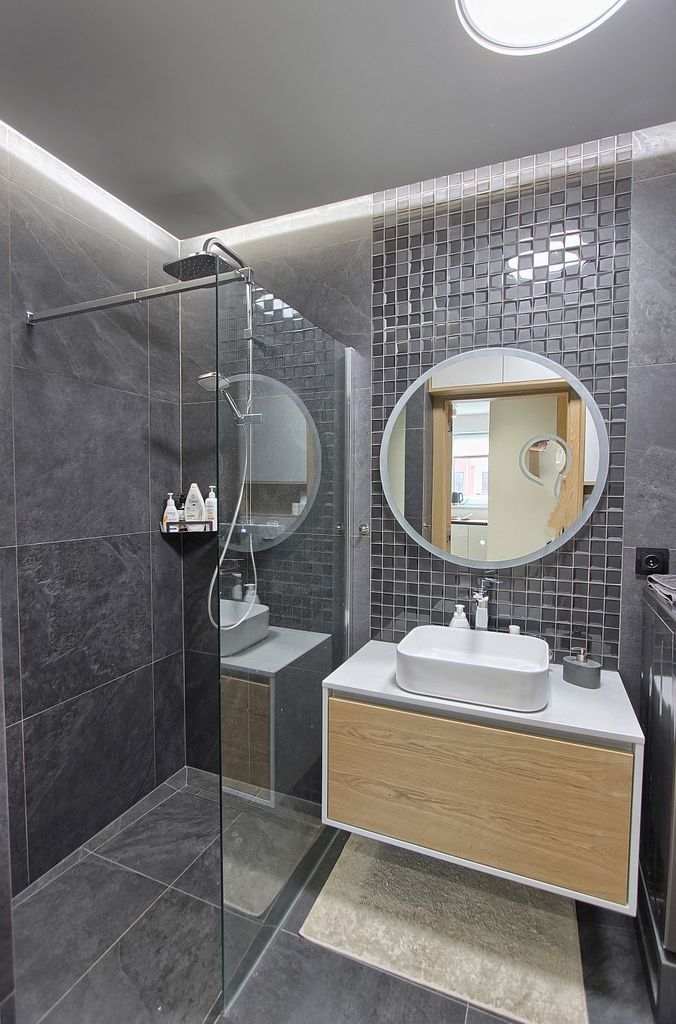 Łazienka z prysznicem i wc w grafitowej glazurze.