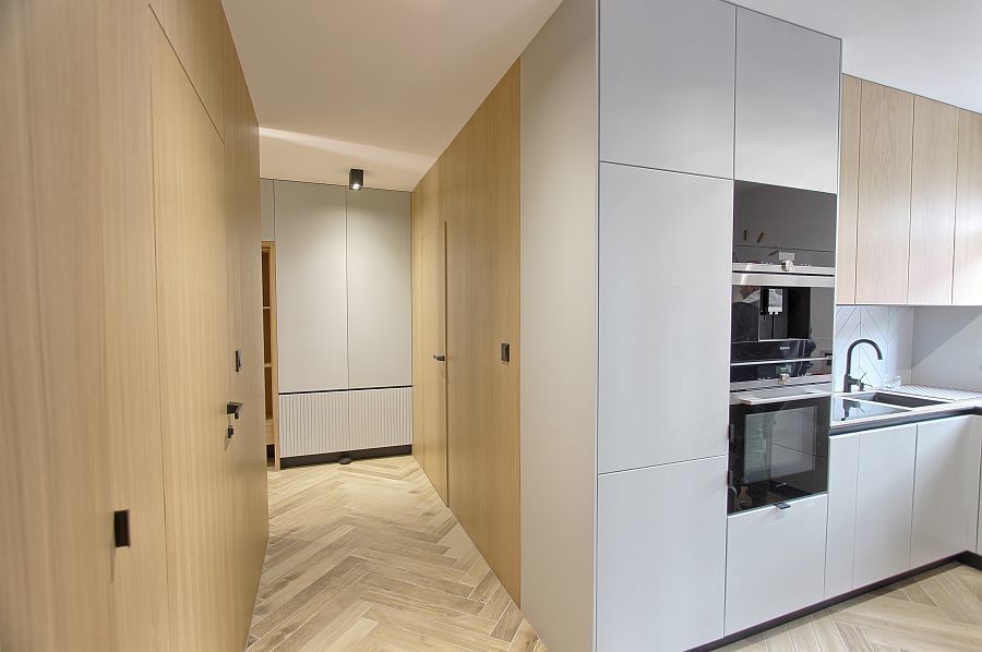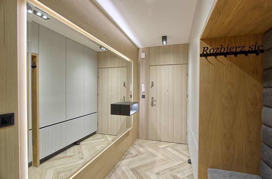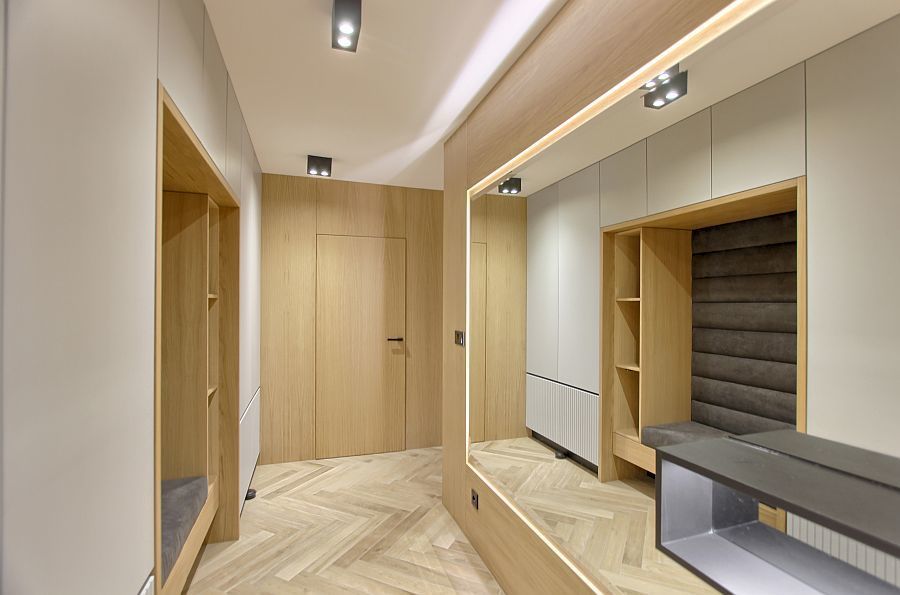 5. Przestronny przedpokój z szafami w zabudowie i podświetlanym lustrem