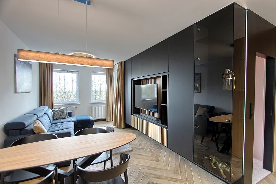 Salon i sypialnia są umeblowane i meble te mogą pozostać w cenie mieszkania.