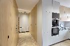 Na podłodze drewno, jasna kuchnia, ściany wygładzone i pomalowane na jasny kolor.