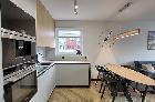 Aneks Kuchenny z meblami na wymiar, wyposażony w profesjonalny sprzęt AGD - ekspres do kawy w zabudowie, płytę elektryczną, piekarnik, lodówkę z zamrażarką, pochłaniacz i zmywarkę.