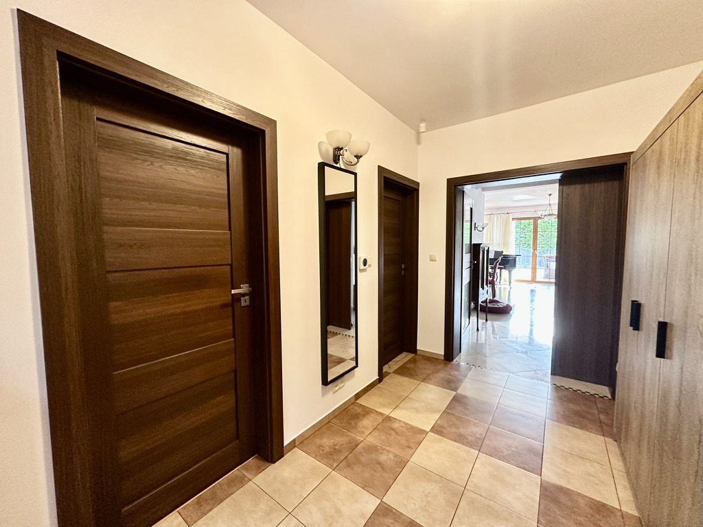 - Otwarty, szeroki korytarz z wyjściem na zadaszony taras,