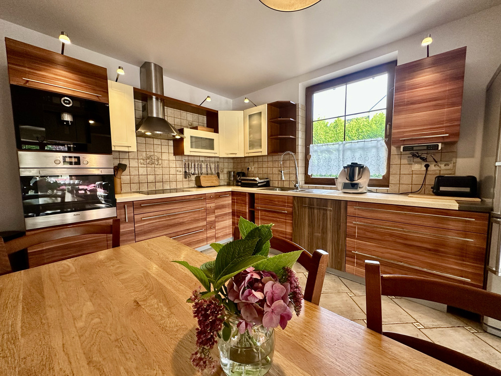 Przestronny i starannie zaprojektowany ogród z licznymi nasadzeniami ozdobnymi oraz drzewami owocowymi zapewnia prywatność oraz idealne warunki do relaksu.