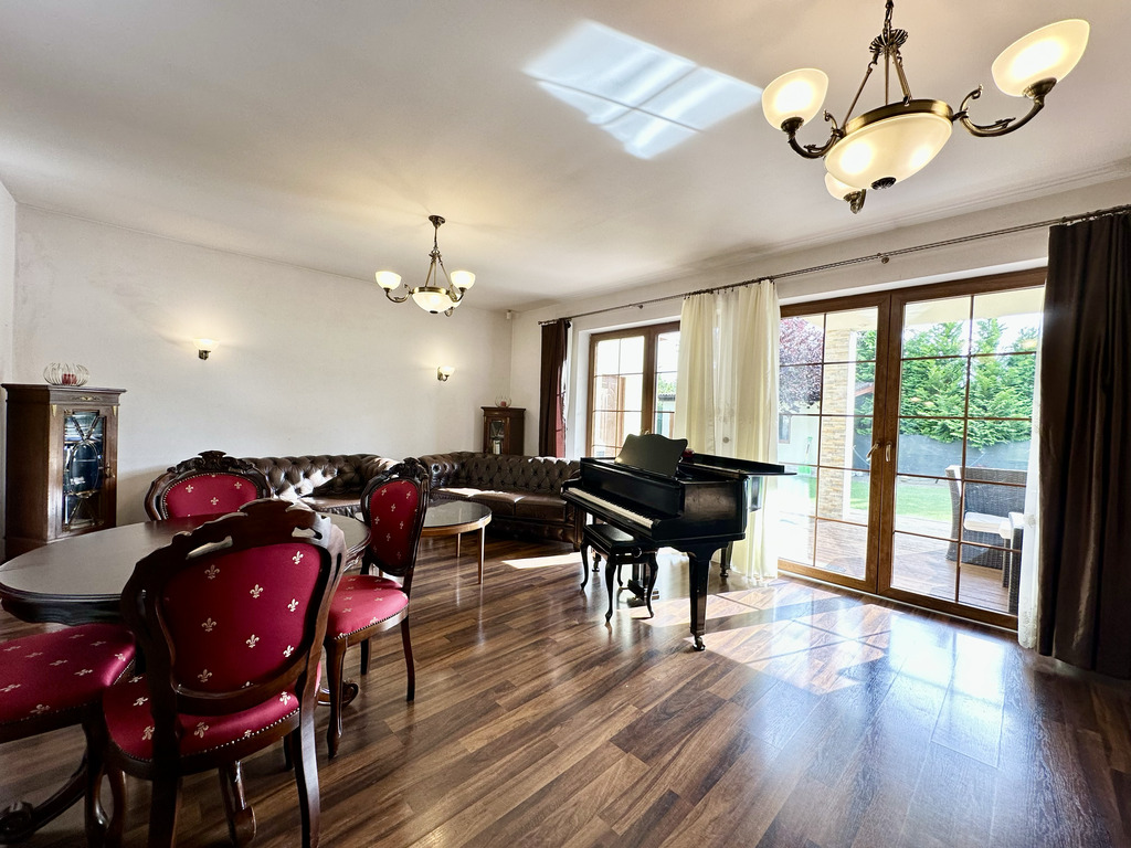 - Przestronny salon z kominkiem (32 m?) i wyjściem na taras,