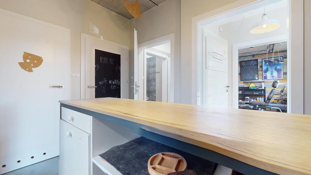- korytarz z 3 mniejszymi pomieszczeniami o łącznej powierzchni ok. 10 m2