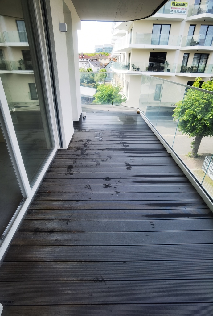 Przemyślany układ pomieszczeń, duży taras po całej długości apartamentu oraz duże przeszklenia zapewniają doskonałe doświetlenie wnętrz i poczucie przestrzeni.