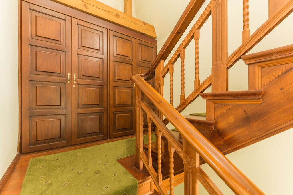 - Przestronny przedpokój z zabudowanymi szafami dopasowanymi stylistycznie do wnętrza.