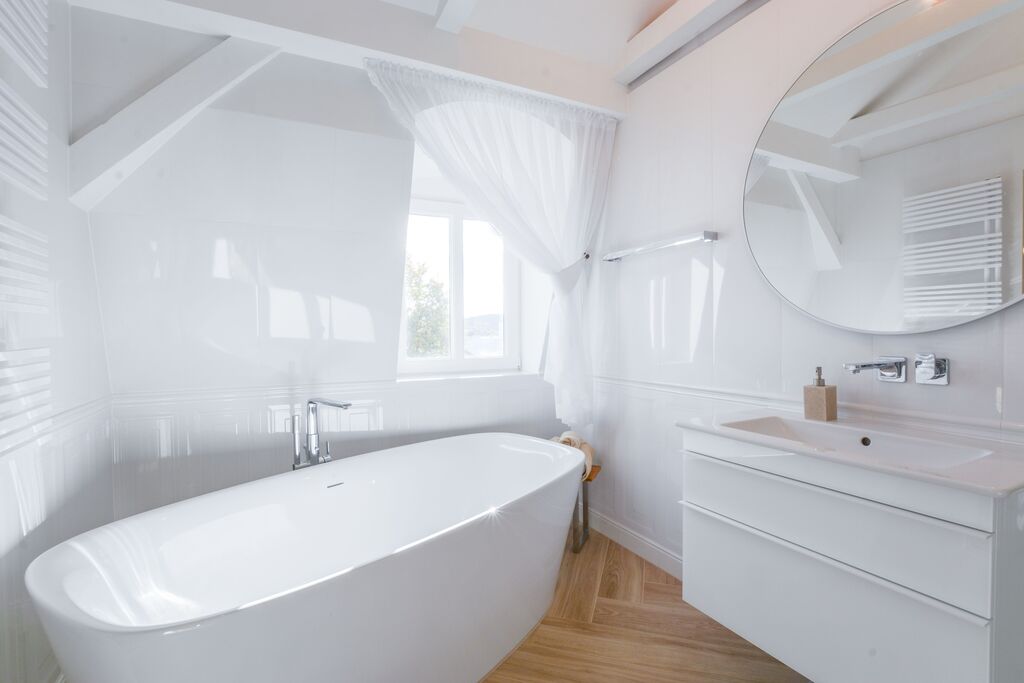 - Główna sypialnia z garderobą oraz prywatną łazienką z wanną i prysznicem Villeroy & Boch,