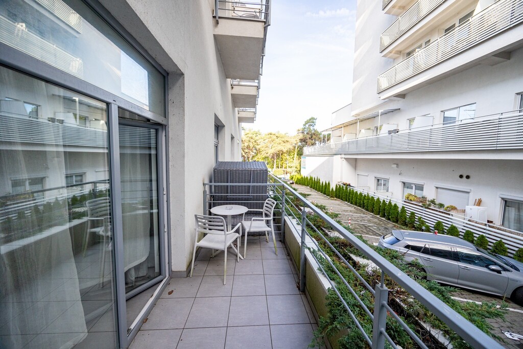 Nowoczesny apartament o powierzchni 22,9 m? położony w apartamentowcu z 2017 roku, zaledwie 100 metrów od plaży i 150 metrów od wejścia do lasu.