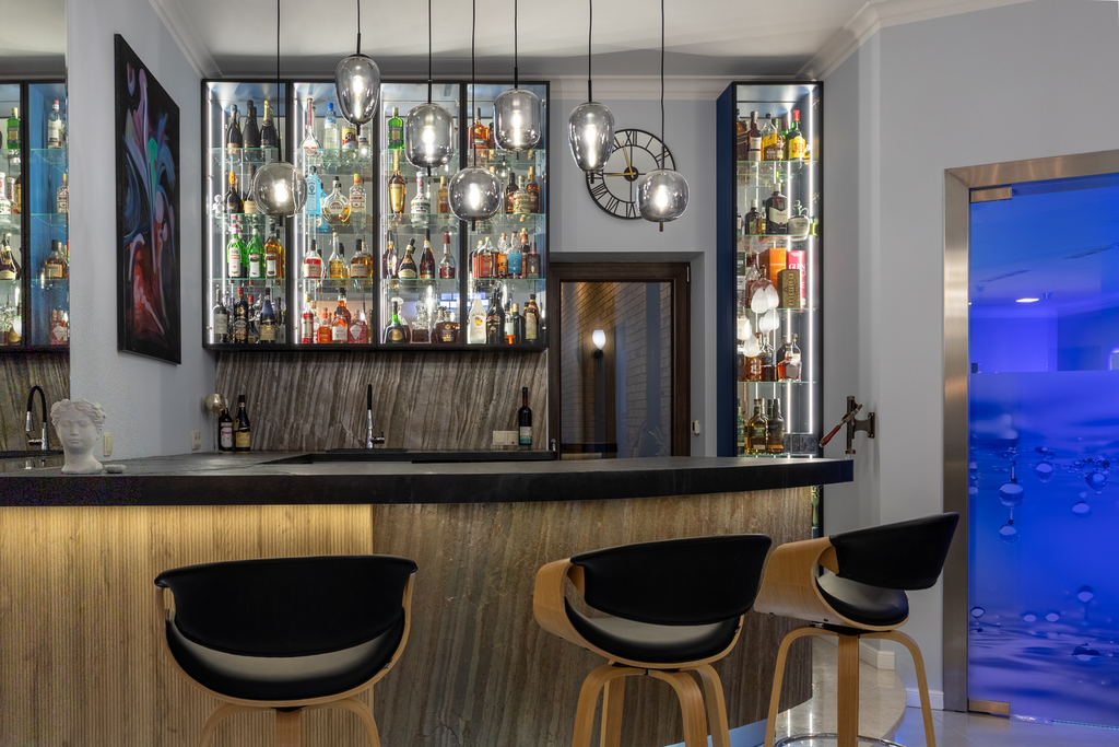 - bar oraz kącik z kominkiem Spatherm o szerokości 120 cm