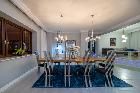 Widok części dziennej domu składającej się z salonu, jadalni oraz kuchni, baru oraz kącika z kominkiem o łącznej powierzchni ponad 100 m2, oczarowuje nas już na samym początku.