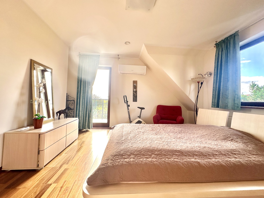 ? Komfortowy dom z rekuperacją, klimatyzacją i pięknym ogrodem ? 200 m?, działka 715 m?Cena: 2 490 000 złPowierzchnia domu: 200 m?Powierzchnia działki: 715 m?Rok budowy: 2012Ilość pokoi: 5?? OPIS NIERUCHOMOŚCI:Na sprzedaż wyjątkowy, w pełni wyposażony dom jednorodzinny o powierzchni 200 m?, położony na pięknie zagospodarowanej działce o powierzchni 715 m?.Dom został wybudowany w 2012 roku z wysokiej jakości materiałów ? ściany z cegły Porotherm, ocieplone styropianem 15 cm, dach pokryty dachówką cementową i ocieplony wełną mineralną.Wnętrze domu zostało urządzone z dużym wyczuciem stylu ? drzwi w kolorze drewna oraz liczne drewniane dodatki nadają pomieszczeniom ciepła i jednocześnie nowoczesnego charakteru.?? UKŁAD POMIESZCZEŃ:Parter:? przestronny salon z kominkiem z płaszczem wodnym i wyjściem na taras (ok. 35 m?, kafle mrozoodporne),? otwarta kuchnia z oknem, pełna zabudowa meblowa oraz sprzęt AGD (płyta indukcyjna, piekarnik, mikrofala, lodówka side-by-side z kostkarką, krajalnica i inne),? jadalnia z dużym stołem,? łazienka z prysznicem,? wiatrołap,? pomieszczenie gospodarcze z pralnią i garderobą, z którego można przejść bezpośrednio do garażu; w pomieszczeniu znajduje się pralka, piec gazowy oraz praktyczne zabudowy.Piętro:? duża łazienka (ok. 14 m?) z wanną i oknem,? sypialnia główna z garderobą i balkonem z widokiem na tereny zielone,? przestronny pokój z antresolą i małą garderobą,? dwa dodatkowe pokoje, w tym pokój przechodni z garderobą.?? DZIAŁKA I OTOCZENIE:? działka ogrodzona płotem klinkierowo?metalowym z zabudowanym śmietnikiem,? pięknie utrzymany ogród z licznymi nasadzeniami,? taras ok. 35 m? pokryty mrozoodpornymi kaflami,? domek narzędziowy z drewna,? zbiornik na deszczówkę o pojemności ok. 6000 litrów.??? WYPOSAŻENIE I UDOGODNIENIA:? okna drewniane dwuszybowe z zewnętrznymi roletami,? rekuperacja (wentylacja mechaniczna z odzyskiem ciepła),? odkurzacz centralny,? alarm,? światłowód,? 4 klimatyzatory marki Green Prestige (salon + 3 pokoje na piętrze, funkcja chłodzenia i grzania),? ogrzewanie gazowe ? piec dwufunkcyjny,? ogrzewanie podłogowe na całym parterze oraz w łazience na piętrze,? kominek z płaszczem wodnym,? fotowoltaika 9 kW zainstalowana na dachu,? schody z drewna egzotycznego.?? DODATKOWE INFORMACJE:Dom gotowy do wprowadzenia, bardzo zadbany, wykończony z dbałością o detale. Drewniane elementy wnętrza tworzą przytulny klimat, a nowoczesne rozwiązania techniczne zapewniają wygodę i oszczędność energii. Idealny dla rodziny, która ceni komfort, ekologię i wysoką jakość wykonania.?? Cena: 2 490 000 złPowierzchnia: 200 m?Działka: 715 m?Rok budowy: 2012*powyższe informacje zostały sporządzone na podstawie oświadczeń i nie są ofertą w rozumieniu przepisów prawa - zalecamy ich osobistą weryfikację.