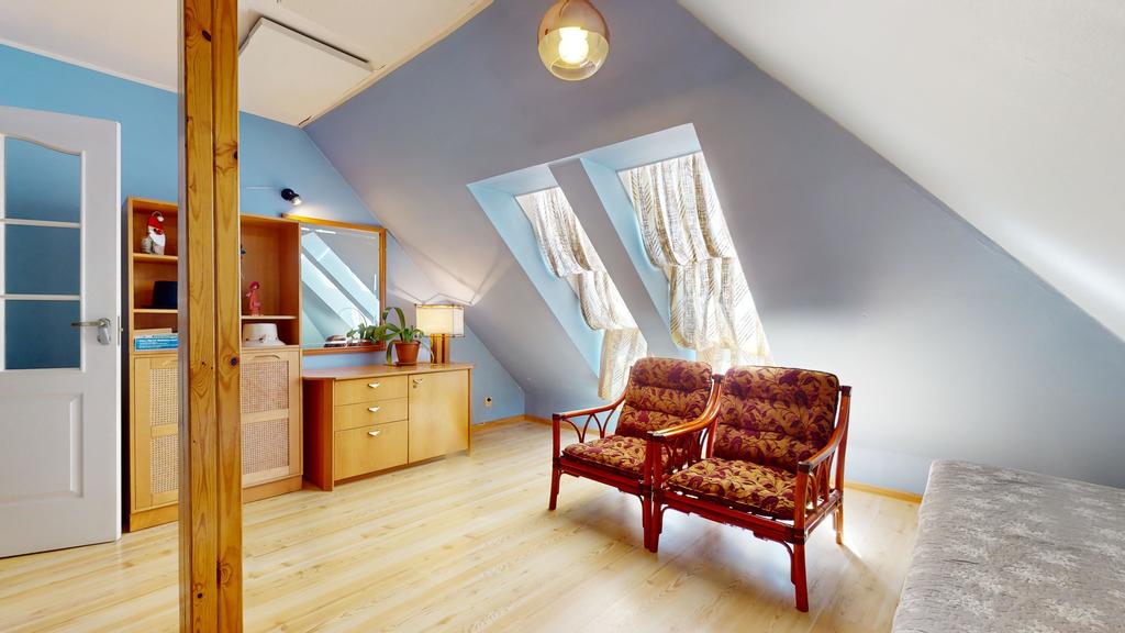 Powierzchnię poddasza stanowią pokoje 10,90/ 10,40/ 7,20 m2, komunikacja, łazienka. Łączna powierzchni drugiej kondygnacji to 45,20 m2. Standard domu - foto.