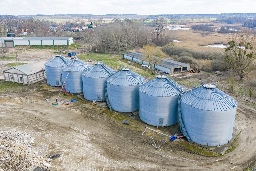 ? silosy - 6 sztuk o pojemności 1000 T każdy, do magazynowania zbóż i innych materiałów sypkich, za dodatkową opłatą 100.000 zł netto/sztuka (zakup nie jest obligatoryjny).
