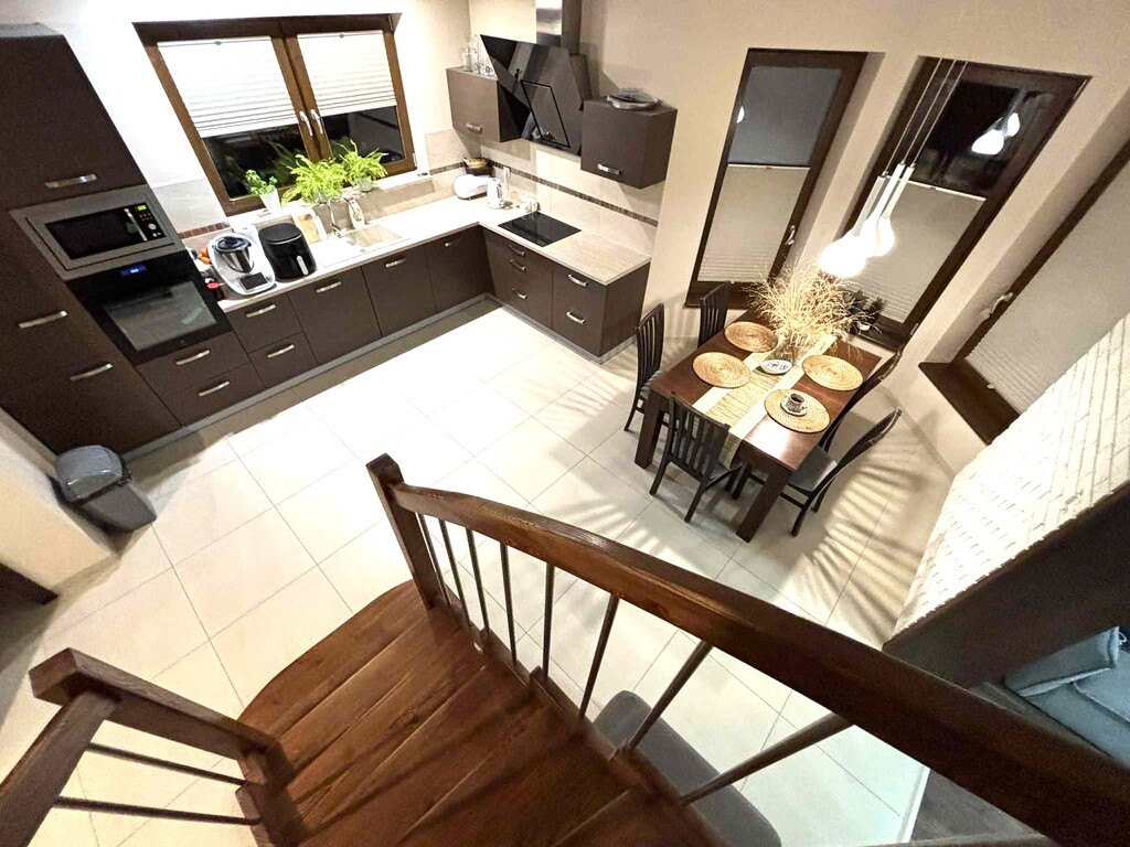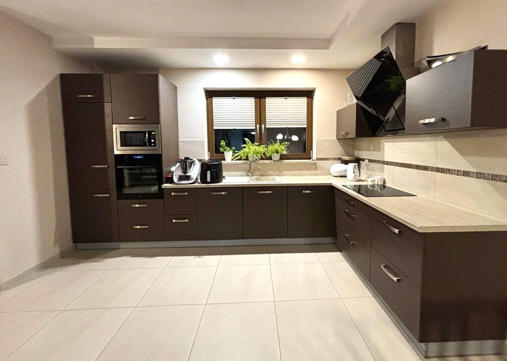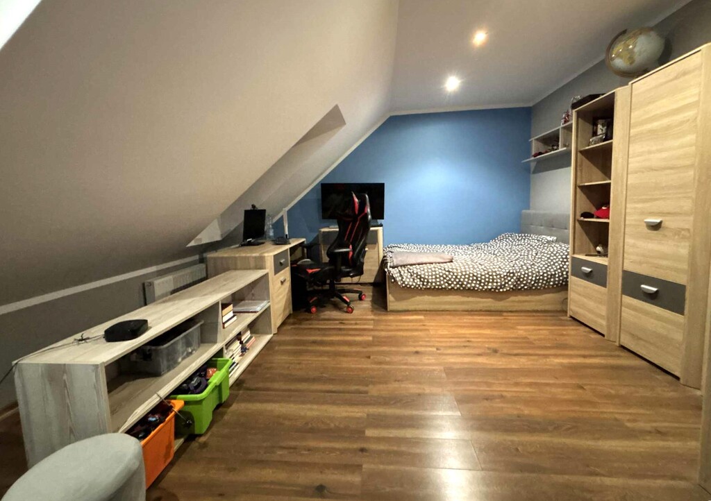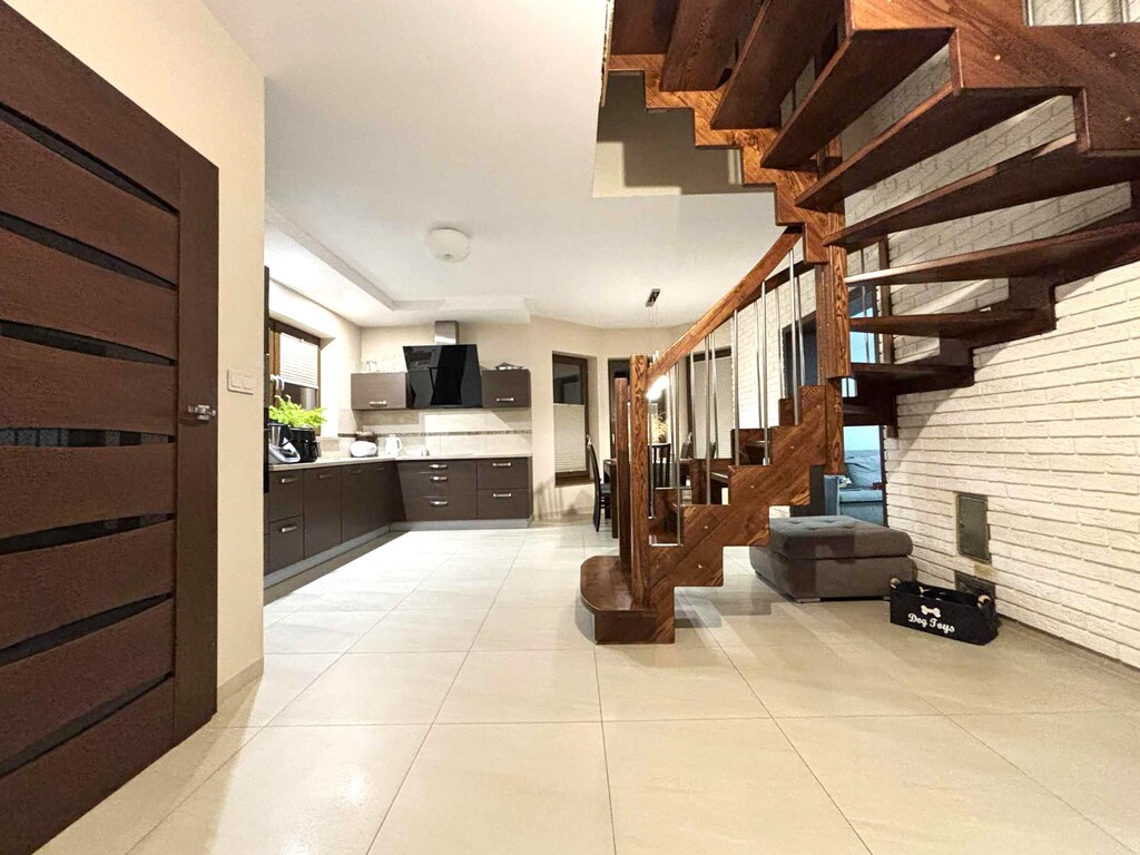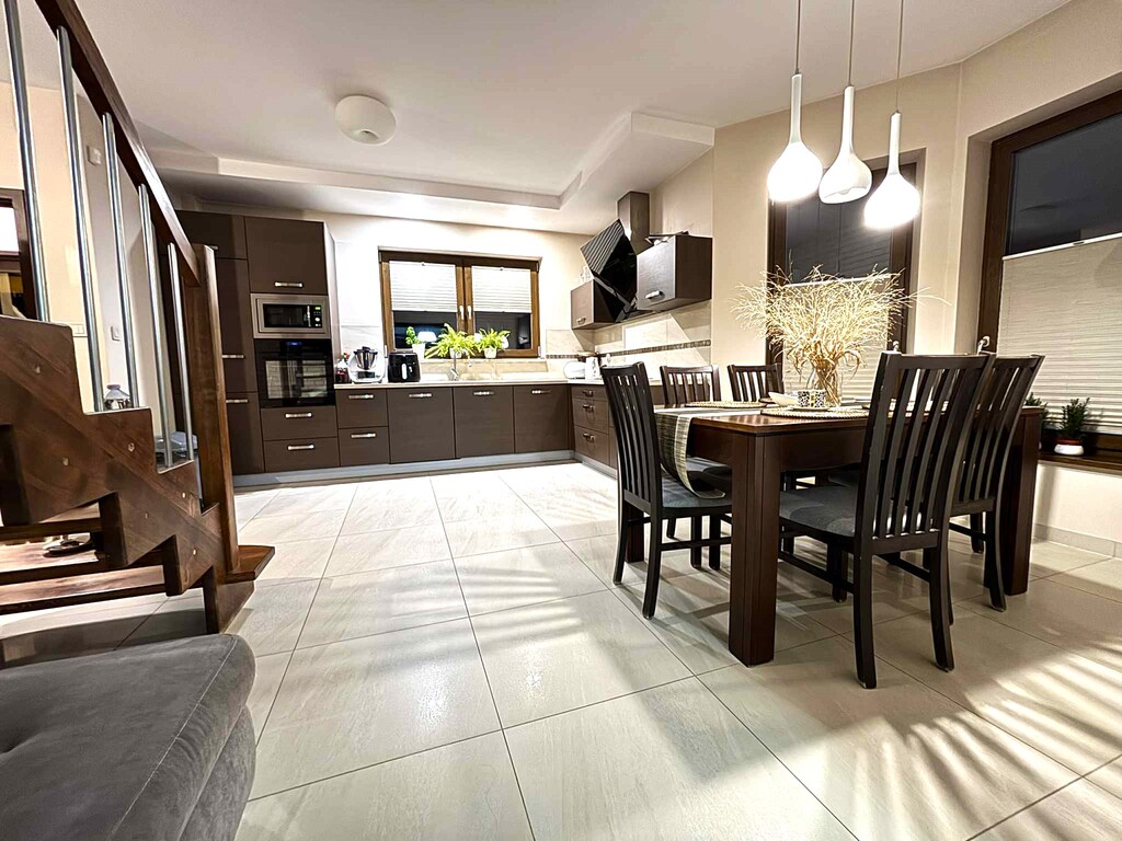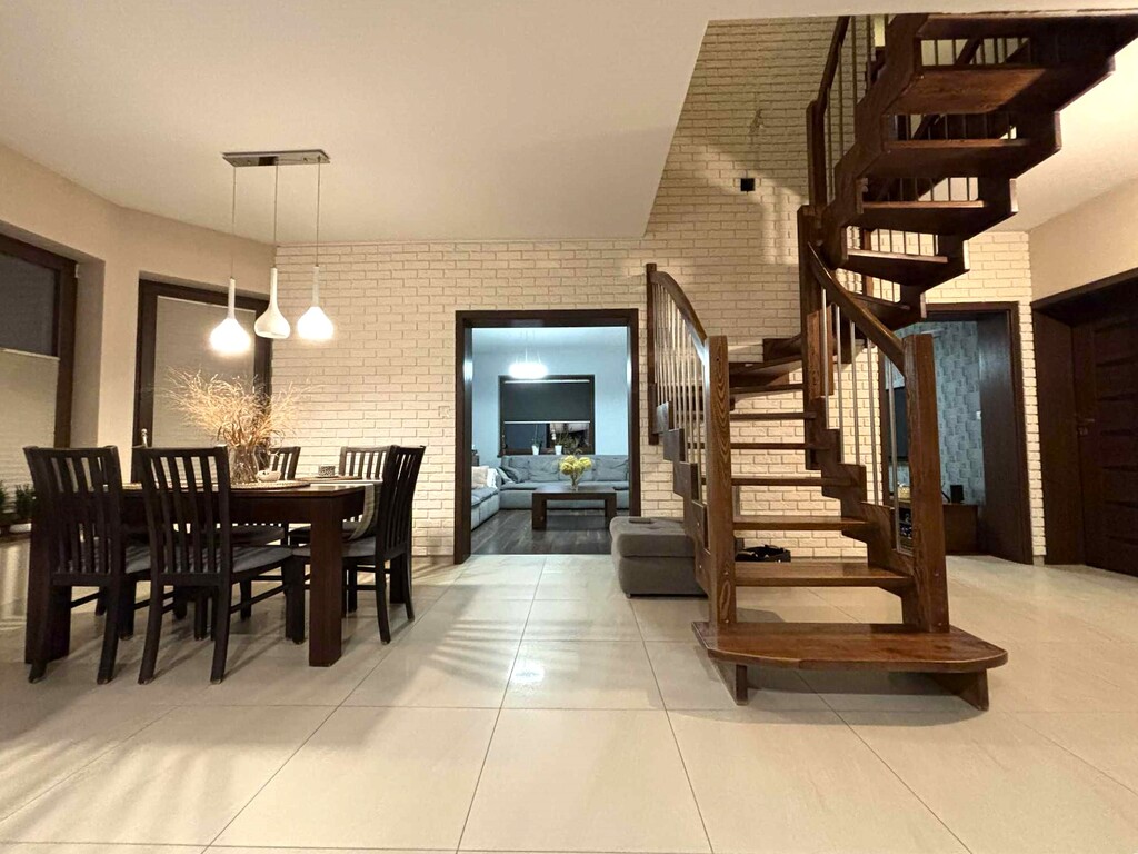 Mamy przyjemność przedstawić Państwu nową ofertę domu wolnostojącego położonego na pięknej działce w zacisznym i spokojnym miejscu, w bliskim sąsiedztwie lasu- w miejscowości Pniewo.Lokalizacja:Bardzo atrakcyjna i spokojna okolica sprzyjająca relaksowi, można tu poczuć pełną prywatność i oderwać się od codziennego zgiełku.W miejscowości sklep spożywczy, bardzo dobry dojazd do Gryfina około 6 km, odległość od Szczecina około 30 km.Czyste jezioro w miejscowości Steklno, oddalone jest o ok 7 km, w sezonie letnim otwarte jest kąpielisko, na plaży znajduje się plac zabaw, boisko do siatkówki, przebieralnia, toalety, a także miejsce na ognisko.W niedalekiej odległości przebiega ścieżka rowerowa między Gryfinem a Swobnicą, która jest częścią szlaku Blue Velo, i prowadzi do Trzcińska-Zdroju. Trasa oferuje wiele widokowych miejsc, a także zwiedzanie zamku joannitów w Swobnicy.W sąsiedztwie nieruchomości znajduje się nowa zabudowa mieszkaniowa jednorodzinna i las.Dojazd do posesji dobry -drogą asfaltową, a następnie przez krótki odcinek oświetloną drogą wewnętrzną.Opis technicznyBudynek wykonany w technologii tradycyjnej- parterowy, wolnostojący z poddaszem użytkowym i garażem dwustanowiskowym w bryle budynku.Powierzchnia użytkowa domu wynosi - 171,36 m2 , działka 2022 m2.Dom o bardzo funkcjonalnym układzie pomieszczeń, jego przestrzeń wyraźnie dzieli się na strefę dzienną, strefę prywatną (nocną) i gospodarczą.Jest to to idealna propozycja dla rodziny 4-5-osobowej. Wszystkie pomieszczenia są dobrze doświetlone, ustawne, wysokość 275 cm.Strefę dzienną tworzy komfortowy salon z wykuszem, kominkiem w jego centralnej części i wyjściem na taras (27 m2).Przy salonie znajduje się duża kuchnia z jadalnią w wykuszu, który jest efektownym i atrakcyjnym elementem architektonicznym, idealne miejsce na stół, doskonale doświetla też wnętrze, ażurowe drewniane schody otwarte na jadalnie, dodatkowo uatrakcyjniają tą część domu (18 m2)W dalszej części parteru pokój, mogący pełnić funkcję gabinetu lub pokoju gościnnego (12, 6 m2) z wyjściem do ogrodu , hal (7 m2) Łazienka z wc z oknem (3 m2), pomieszczenie gospodarcze, przy którym znajduje się praktyczna szafa w zabudowie (6 m2) oraz duży garaż (32,5 m2)Strefa nocna znajdująca się na poddaszu składa się :- trzech sypialni z każdej wyjście na balkon (14,9/14,3/10,3 m2) hallu (9,9 m2), dużej łazienki (11,4 m2) z miejscem na wannę i kabinę prysznicową, oraz pokoju nad garażem, który znajduje się za łazienką (15 m2) i świetnie sprawdzi się jako pralnia, garderoba, czy pokój rekreacyjny lub domowe spa. Nad tą kondygnacją strych.Standard wykończeniaDom wykończony w wysokim standardzie i utrzymany w bardzo dobrym stanie technicznym. To wnętrze łączy w sobie funkcjonalność z przytulnością, dominują w nim ciepłe kolory., które sprawiają, że dom jest przyjazny i klimatyczny.W całym budynku okna trzyszybowe, drzwi zewnętrzne i wewnętrzne dobrej jakości.Podłogi w salonie, gabinecie i na poddaszu panele dobrej klasy, idealnie komponujące się z kolorem stolarki okiennej i drzwiowej .W kuchni i jadalni bardzo ładny gres, świetnie wydobywający kolor zabudowy kuchennej i schodów.Ściany gładzone w pastelowych kolorach. Łazienka na parterze wykończona w glazurze i terakocie z kabiną prysznicową, druga na poddaszu do własnej aranżacjiW cenie domu zostaje zabudowa meblowa w kuchni wraz z wyposażeniem dobrej klasy, oraz szafa w zabudowie zamontowana na parterze budynku.OgródPosesja ogrodzona, poza budynkiem mieszkalnym budynek gospodarczy, oraz nowa drewniana altana.Działka płaska z ogromnym potencjałem aranżacji zieleni, jej powierzchnia pozwala, także na wydzielenie strefy: wypoczynkowej, rekreacyjnej, użytkowej. budowę placu zabaw, basenu, czy też kuchni letniej.Brama wjazdowa jak również brama garażowa z napędem elektrycznym. Wjazd przed budynkiem wyłożony polbrukiem.W ogrodzie studnia do podlewania, a także kanał samochodowy.MediaBudynek podłączony do sieci wodociągowej i kanalizacyjnej, energia elenktyczna, gaz, światłowód. Źródło centralnego ogrzewania piec gazowy. Dodatkowo kominek z wyprowadzonym kanałem dystrybucji ciepłego powietrza. Ogrzewanie podłogowe na parterze budynku, na poddaszu w łazience. Dom jest bardzo ciepły i ekonomiczny w utrzymaniu Zamontowana instalacja fotowoltaiczna.Podatek od nieruchomości wynosi 800 zł rocznie.Prezentacja w czasie dogodnym dla klientów. Polecamy to wyjątkowy, klimatyczny dom w bardzo atrakcyjnej lokalizacji.*powyższe informacje zostały sporządzone na podstawie oświadczeń i nie są ofertą w rozumieniu przepisów prawa - zalecamy ich osobistą weryfikację.
