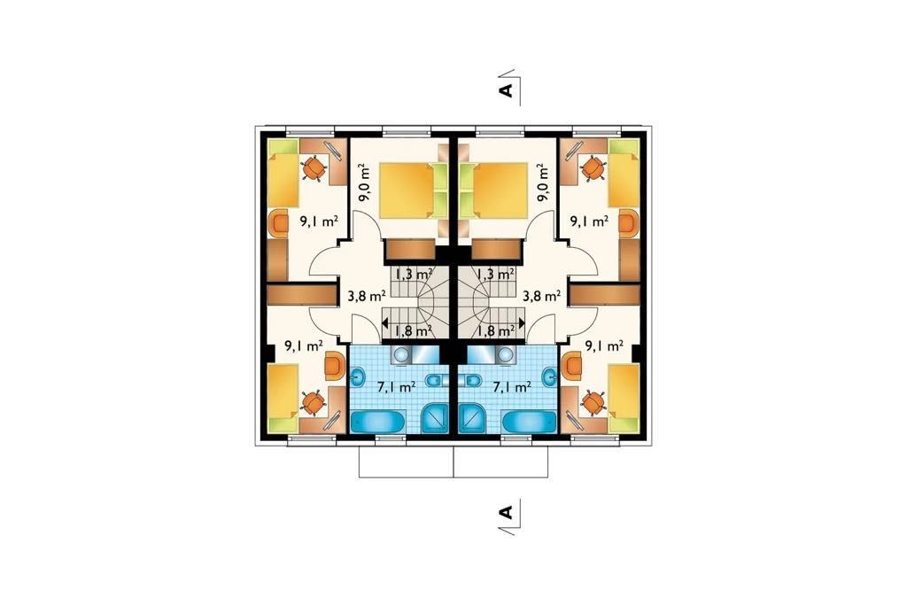 Piętro - trzy pokoje, łazienka z WC oraz korytarz. Na poddaszu dodatkowa przestrzeń o powierzchni 38,8m2.