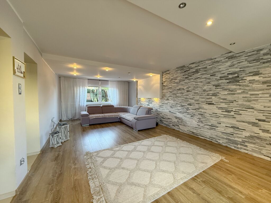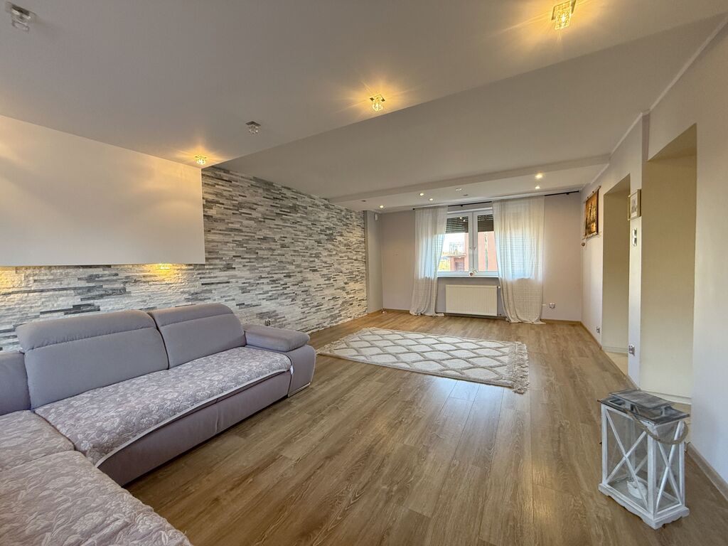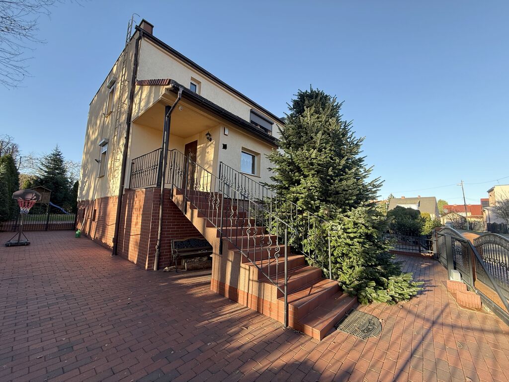 Dom w zabudowie bliźniaczej położony na spokojnym zielonym osiedlu.Na powierzchnię domu składają się:PRZYZIEMIE: garaż 1 stanowiskowy, pomieszczenie gospodarcze (pralnia), kotłownia,PARTER: wiatrołap, przedpokój, bardzo przestronny salon (30 m2), duża kuchnia, łazienka (wyposażona w wannę) z wc. Z salonu wyjście na taras i ogródek.. Jest możliwość podzielenia salonu i zrobienia sypialni lub gabinetu na parterze domu.I PIĘTRO: 3 przestronne sypialnie, przedpokój, łazienka (wyposażona w wannę) z wc.Dom po remoncie generalnym przeprowadzonym w 2009 roku, modernizowany również w kolejnych latach, bardzo zadbany, do zamieszkania bez konieczności ponoszenia nakładów.Ściany gładzone i malowane, na podłogach gres, terakota oraz panele.Na piętro prowadzą drewniane schody.Okna PCV. W oknach rolety zewnętrzne.Łazienki w nowoczesnej glazurze i terakocie.Kuchnia przestronna, z nowoczesną zabudową oraz sprzętem AGD, które pozostają w cenie (bez lodówki).Dom i ciepła woda ogrzewane z pieca gazowego 2 biegowego. Alternatywnym źródłem ciepła jest piec na opał stały.Budynek ocieplony.W domu zainstalowana instalacja alarmowa i monitoring.Brama garażowa oraz bramy wjazdowe na posesję otwierane pilotem.Nieruchomość bardzo ładnie położona, na spokojnej małej ulicy, w okolicy dużo zieleni.Zapraszam na prezentację.Nie masz gotówki na zakup tej nieruchomości? To nie problem, nasz doświadczony doradca finansowy uzyska dla Ciebie najkorzystniejsze finansowanie.Powyższy opis ma charakter informacyjny i nie stanowi oferty w rozumieniu przepisów Kodeksu Cywilnego oraz innych właściwych przepisów prawnych.Informacje umieszczone w ofertach przekazywane są przez właścicieli nieruchomości i mogą ulegać zmianom.*powyższe informacje zostały sporządzone na podstawie oświadczeń i nie są ofertą w rozumieniu przepisów prawa - zalecamy ich osobistą weryfikację.