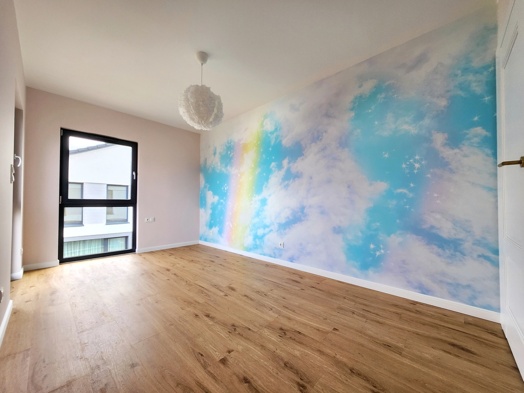 Ściany gładzone i malowane. Na podłogach panele winylowe.