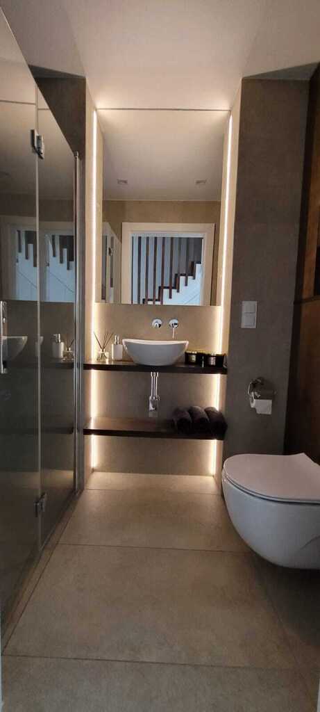 - łazienka z prysznicem oraz toaletą