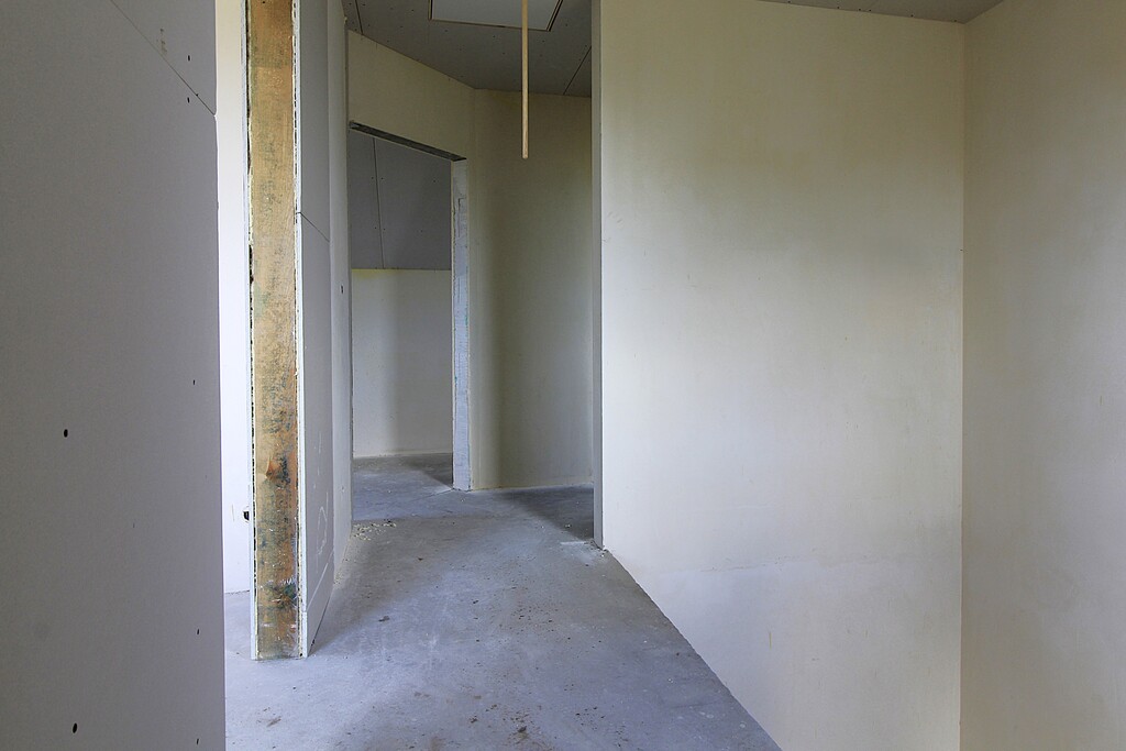 Na pierwszym poziomie znajduje się salon z aneksem kuchennym, wydzieloną sypialnią dla gości lub pomieszczeniem na gabinet, łazienką i przedpokojem.