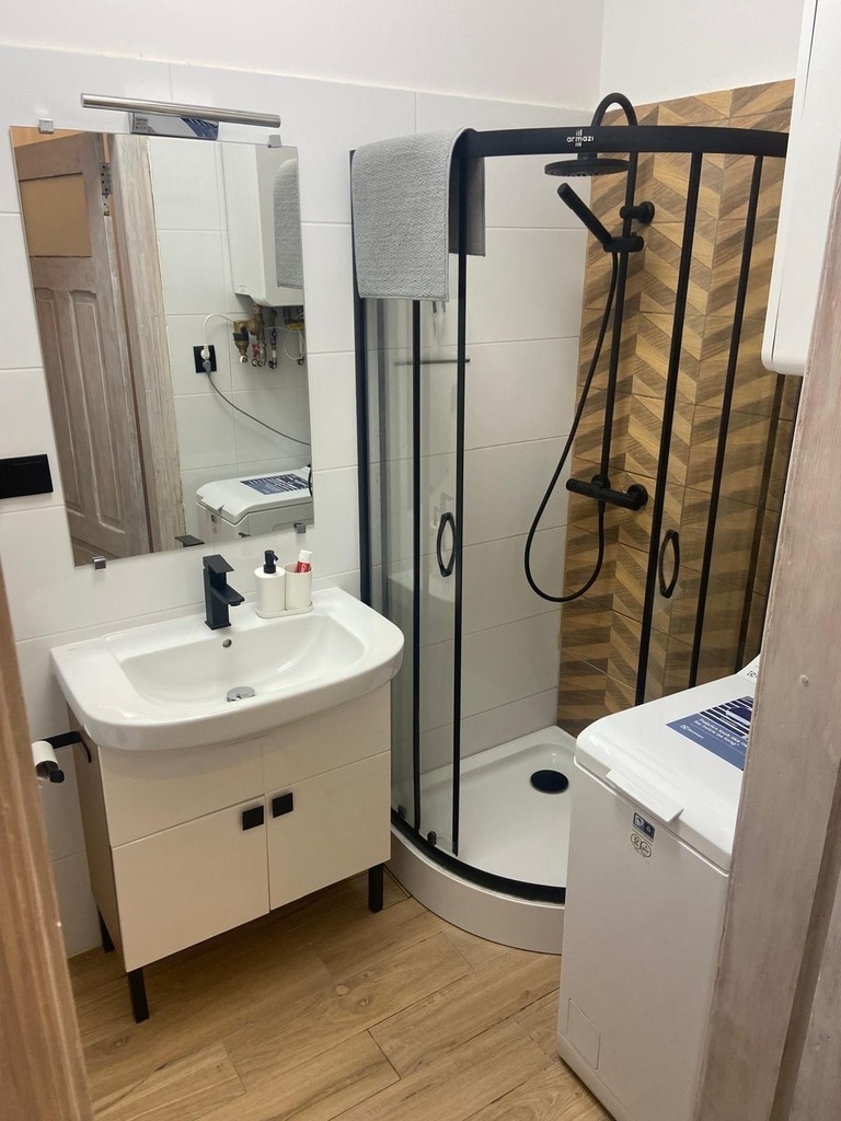 - łazienki z prysznicem oraz toaletą i pralką