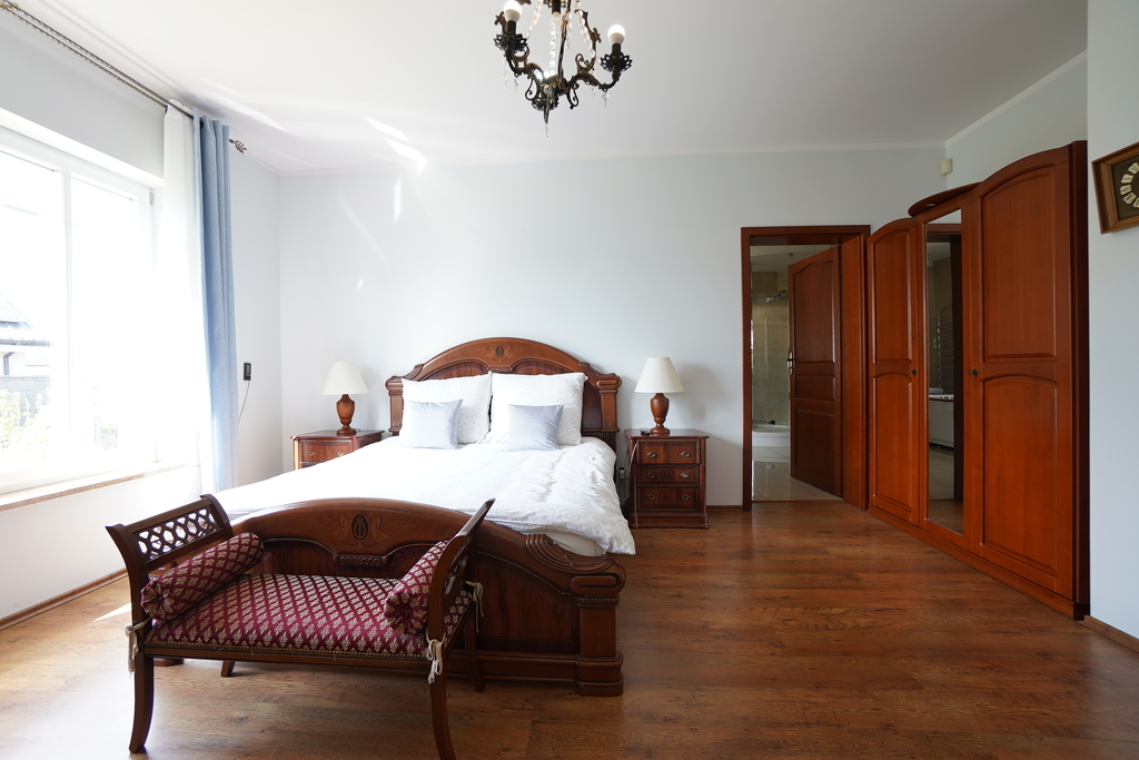 Dom posiada wiele nowoczesnych rozwiązań m.in: studnia głębinowa z hydroforem, instalacje alarmowe, kominek, ogrzewanie podłogowe. Dom jest wykonany z najwyższej jakości materiałów i jest gotowy do wprowadzenia się. Nieruchomość posiada wyjątkowy styl, z każdej strony domu wpada dużo światła, przez co wnętrze jest bardzo jasne .
