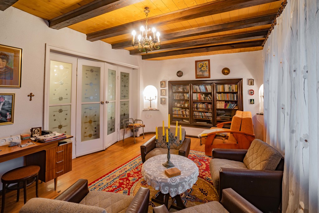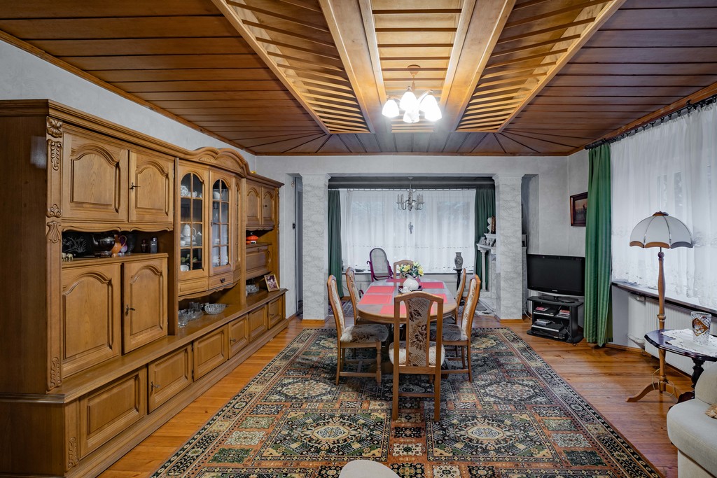 W domu zachowanych jest dużo elementów przedwojennych, w latach 90-tych wykonany był remont dachu i wymiana okien na nowe PCV. Dom do remontu, na ścianach tapety, podłogi deski drewniane, w salonie i bibliotece sufity drewniane, łazienki i kuchnia kafle.