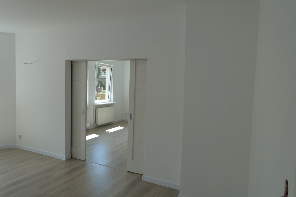 Parter poniemieckiej willi o powierzchni całkowitej 101,25 m2, po kapitalnym remoncie położony w Dąbiu w Szczecinie. Do mieszkania przynależy również garaż w bryle budynku, część ogrodu i piwnic oraz część strychu. Udział 55/100 w częściach wspólnych budynku. Działka dla całej nieruchomości to 647 m2. Natomiast do parter przynależy 324 m2 działki. W budynku dwa niezależne mieszkania, jedno na parterze będące przedmiotem sprzedaży, drugie na piętrze. Remont dachu wykonano.PARTER: 4 pokoje 28 m2, 18 m2, 16 m2, 10 m2, kuchnia ok. 7,5 m2, łazienka ok. 4 m2. Z pokoju z wykuszem wejście do dwóch mniejszych pokoi z suwanymi drzwiami, ponadto duży pokój oddzielnie. Z budynku wyjście na ogród od strony południowo - zachodniej. Z korytarza piwnicznego wejście do garażu pod budynkiem, wyjazd bramą otwieraną na podjazd.W mieszkaniu został wykonany kapitalny remont. Wykonano nową elewację, wymieniono wszystkie instalacje (elektryczną, ogrzewania oraz wodno - kanalizacyjną). Nowe grzejniki. W kuchni i łazience wykonano nowe podejścia do instalacji wodnej. Nowe okna PCV. Drzwi wejściowe antywłamaniowe, stolarka wewnętrzna biała, nowa. Nowe panele na podłogach, za wyjątkiem kuchni łazienki gdzie jest wylewka.Wewnątrz wykonano ściany w gładzi pomalowane w białym kolorze, nowe podłogi i drzwi zarówno wewnętrzne jak i zewnętrzne.Ogrzewanie i ciepła woda z nowego pieca gazowego. Dojazd drogą asfaltową.The ground floor of a German villa with a total area of 101.25 m2, after a major renovation located in Dąbie in Szczecin. The apartment also includes a garage in the building, part of the garden and basements and part of the attic. Share 55/100 in the common parts of the building. The plot for the entire property is 647 m2. On the other hand, the ground floor includes 324 m2 of plot. The building has two independent apartments, one on the ground floor which is the subject of sale, the other on the first floor. GROUND FLOOR: 4 rooms 28 m2, 18 m2, 16 m2, 10 m2, kitchen approx. 7.5 m2, bathroom approx. 4 m2. From the room with a bay window, entrance to two smaller rooms with sliding doors, in addition a large room separately. From the building, exit to the garden from the south-west side. From the basement corridor, entrance to the garage under the building, exit through a gate opening to the driveway. The house has undergone a major renovation. A new elevation, new roof, all installations (electrical, heating and water - sewage) were made. New radiators. New approaches to the water installation were made in the kitchen and bathroom. New PVC windows. Anti-burglary entrance door, white internal joinery, new. New panels on the floors, except for the kitchen and bathroom where there is a screed. Inside, the walls were made in a smooth white paint, new floors and doors, both internal and external. Heating and hot water from a new gas furnace. Access via an asphalt road. The ground floor of a German villa with a total area of 101.25 m2, after a major renovation located in Dąbie in Szczecin. The apartment also includes a garage, part of the garden and basements and part of the attic. Share 55/100 in the common parts of the building. The plot for the entire property is 647 m2. On the other hand, the ground floor includes 324 m2 of plot. The house has undergone a major renovation. A new elevation, a new roof, all installations (electrical, heating and water - sewage) have been replaced. New radiators. New approaches to the water installation have been made in the kitchen and bathroom. New PVC windows. Anti-burglary entrance doors, white internal joinery, new. New panels on the floors, except for the kitchen and bathroom where there is a screed. GROUND FLOOR: 4 rooms 28 m2, 18 m2, 16 m2, 10 m2, kitchen approx. 7.5 m2, bathroom approx. 4 m2. From the room with a bay window, entrance to two smaller rooms with sliding doors, and a separate large room. From the building, exit to the garden from the south-west. From the basement corridor, entrance to the garage under the building, exit through a gate that opens to the driveway. The building has two independent apartments, one on the ground floor, which is the subject of sale, the other on the first floor. Inside, the walls are made of smooth, painted white, new floors and doors, both internal and external. Heating and hot water from a new gas furnace. Access via an asphalt road. The ground floor of a German villa with a total area of 101.25 m2, after a major renovation located in Dąbie in Szczecin. The apartment also includes a garage, part of the garden and basements and part of the attic. Share 55/100 in the common parts of the building. The plot for the entire property is 647 m2. On the other hand, the ground floor includes 324 m2 of plot. The house has undergone a major renovation. A new elevation, a new roof, all installations (electrical, heating and water - sewage) have been replaced. New radiators. New approaches to the water installation have been made in the kitchen and bathroom. New PVC windows. Anti-burglary entrance doors, white internal joinery, new. New panels on the floors, except for the kitchen and bathroom where there is a screed. GROUND FLOOR: 4 rooms 28 m2, 18 m2, 16 m2, 10 m2, kitchen approx. 7.5 m2, bathroom approx. 4 m2. From the room with the bay window, entrance to two smaller rooms with sliding doors, in addition, a large room separately. From the building, exit to the garden on the south-west side. From the basement corridor, entrance to the garage under the building, exit through the gate that opens to the driveway. The building has two independent apartments, one on the ground floor, which is the subject of sale, the other on the first floor. Inside, the walls were made in a smooth finish painted in white, new floors and doors both internal and external. Heating and hot water from a new gas furnace. Access via an asphalt road.*powyższe informacje zostały sporządzone na podstawi