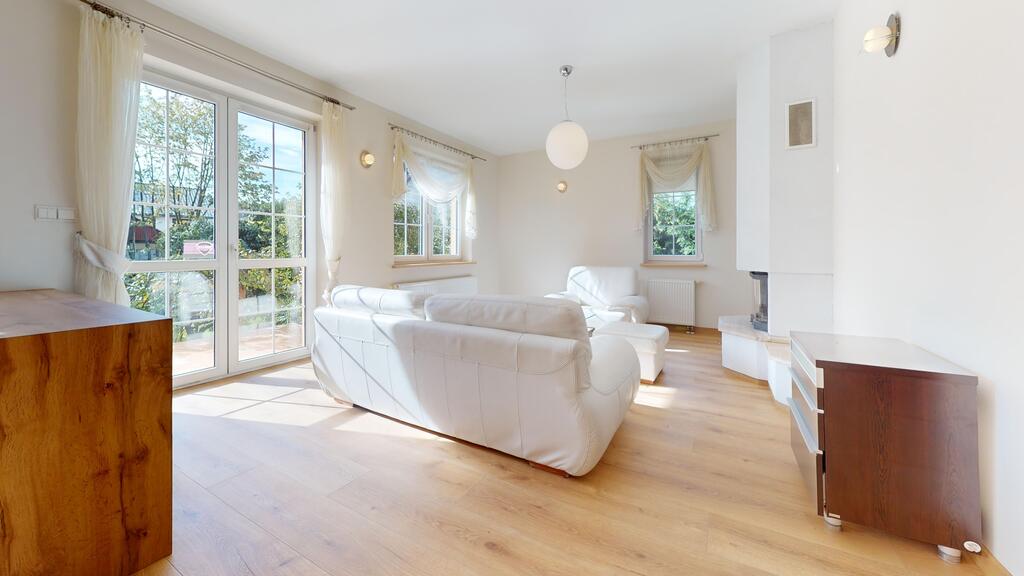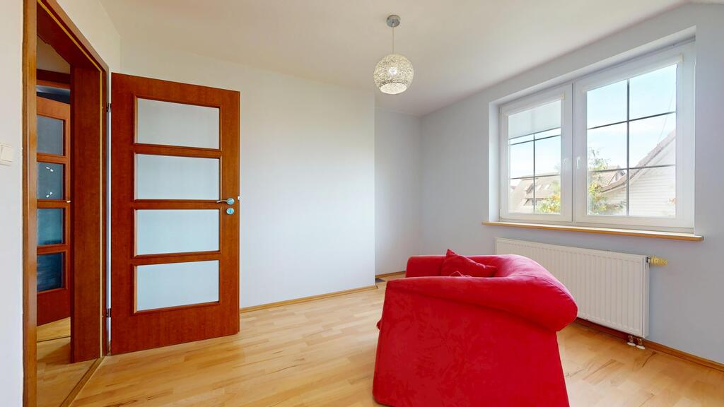 Na parterze oprócz salonu dodatkowy pokój, obecnie funkcjonuje jako gabinet, na piętrze 3 pokoje; to tylko niektóre atuty nieruchomości.