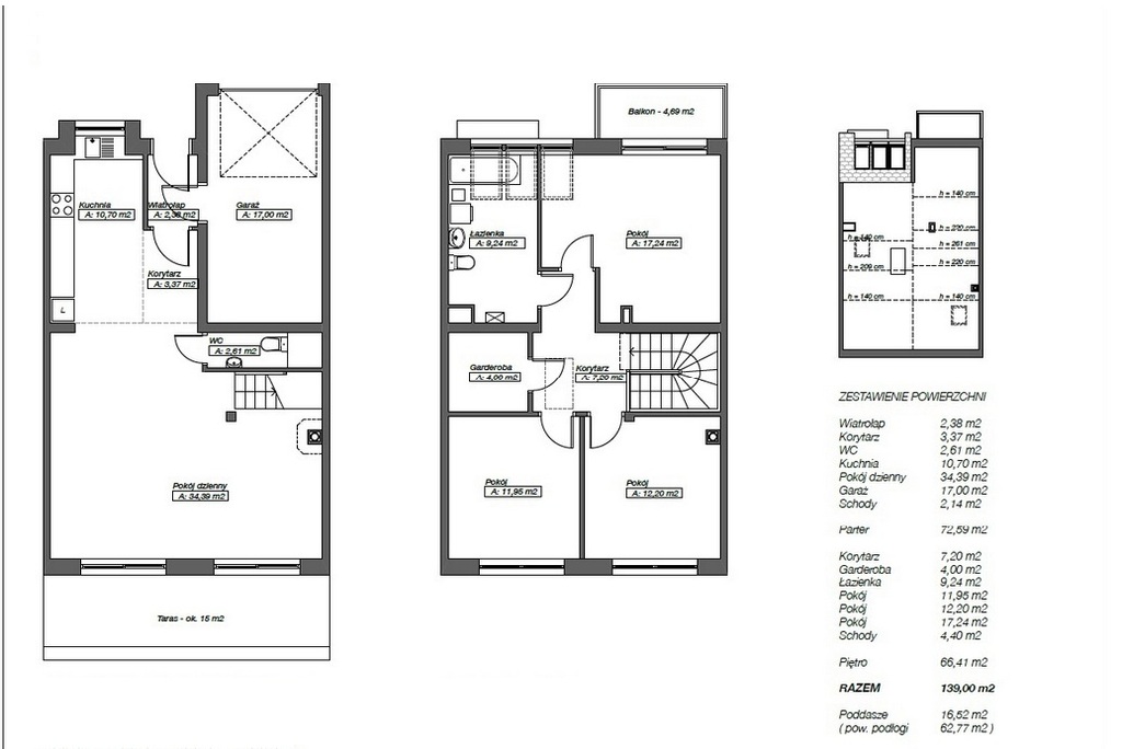 Mam przyjemność zaprezentować Państwu bardzo interesujący dom 139m?, 4pokojowy w zabudowie szeregowej, znajdujący się na Gumieńcach.Do nieruchomości przynależy ogród z tarasem, idealny do wypoczynku na świeżym powietrzu, oraz garaż z automatyczną bramą na pilota. Dodatkowo przy domu znajdują się miejsca parkingowe dla mieszkańców i gości. Na powierzchnię użytkową składają się: Parter:- Salon z aneksem kuchennym o powierzchni 45,09 m2,- wc o powierzchni 2,61 m2,- korytarz o powierzchni 3,37 m2,- wiatrołap o powierzchni 2,38 m2,- garaż o powierzchni 17,00 m2,- schody o powierzchni 2,14 m2.+ Taras o powierzchni 15m2,+ Ogród o powierzchni 178 m2. Piętro:- Pokój o powierzchni 17,24 m2,- Pokój o powierzchni 12,20 m2,- Pokój o powierzchni 11,95 m2,- Garderoba o powierzchni 4 m2,- Łazienka o powierzchni 9,24 m2,- Korytarz o powierzchni 7,20 m2,- Schody o powierzchni 4,20 m2.+ Do swojej dyspozycji mają państwo również strych, który nie został wliczony w metraż domu .Lokalizacja to doskonały wybór dla osób ceniących spokój, bezpieczeństwo i komfort, do centrum miasta zaledwie 15min.W okolicy znajduje się dużo otwartej przestrzeni, co stanowi ogromny atut tej nieruchomości. W sąsiedztwie dostępne są również apteki, szkoły oraz przedszkola, co czyni to miejsce idealnym dla rodzin.Nieruchomość sprzedawana w standardzie deweloperskim - Możliwe wykończenie domu pod klienta - odbiór pod klucz.Serdecznie zapraszam na prezentację ? ten dom z pewnością spełni Państwa oczekiwania!*powyższe informacje zostały sporządzone na podstawie oświadczeń i nie są ofertą w rozumieniu przepisów prawa - zalecamy ich osobistą weryfikację.
