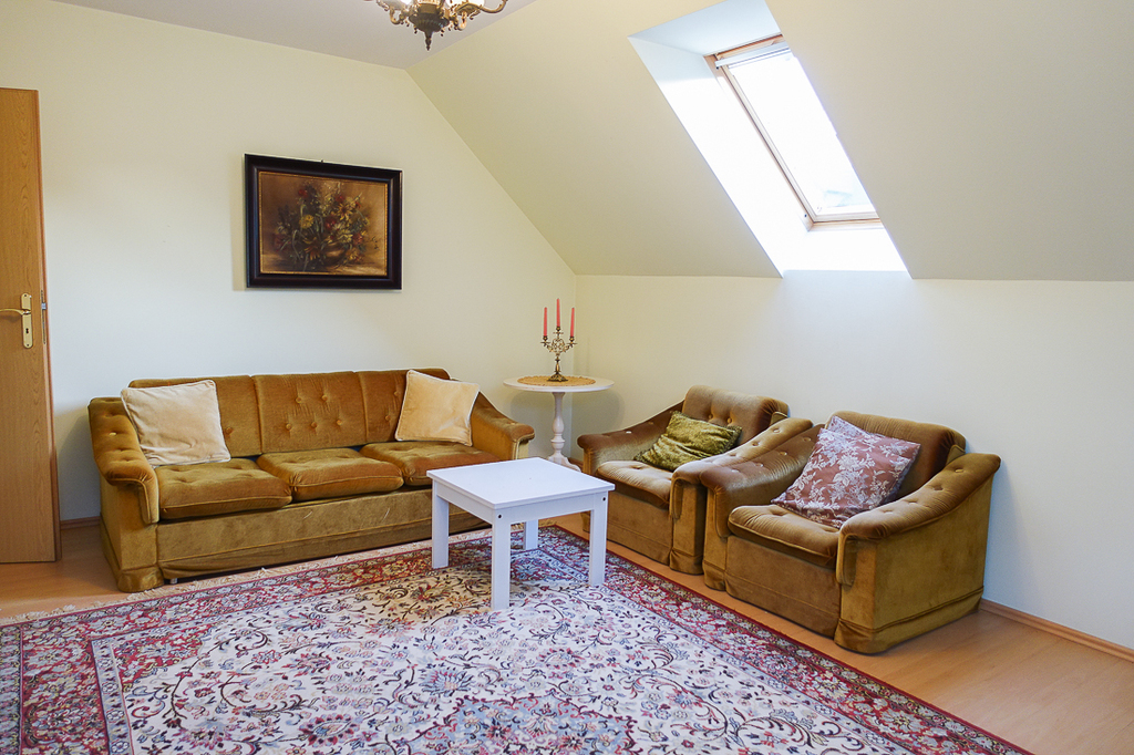 Do sprzedaży wolno stojący dom, z 2000 roku, bardzo wygodny i funkcjonalny. Kameralna lokalizacja na Gumieńcach, przy bardzo spokojnej ulicy, wśród bogatej zieleni i w otoczeniu innych domów jednorodzinnych oraz zielonych terenów rekreacyjnych. Okolice ulic Huzarów, Niepołomickiej, Tynieckiej.Dom z dobrym dostępem do komunikacji miejskiej. Idealny dla wielopokoleniowej rodziny.Priorytetem w tworzeniu domu był rodzinny klimat co widać w przemyślanej przyjaznej aranżacji domu. Dzięki dużym oknom na parterze wnętrza pełne są naturalnego światłą podkreślając otwarty charakter. Dom został starannie zaplanowany z myślą o rodzinie tworząc idealne warunki do odpoczynku i do pracy.Parter (93,5 m?):* Hall (10,5 m?) - otwarty na salon, z wejściami do: kuchni, toalety dla gości, pomieszczeń technicznych oraz na poddasze.* W salonie (32 m?) zwraca uwagę kominek i wyjście podwójnymi drzwiami na taras (16 m?) otoczony zielenią stanowiącym idealne miejsce na chwile wytchnienia i dalej do ogrodu z drzewami i krzewami. Salon otwarty na hall.* Sercem domu jest przestronna, jasna kuchnia (13,5 m?) - o kształcie kwadratu, z oknem, której delikatne oświetlenie tworzą przytulną atmosferę, sprawia, że gotowanie staje się prawdziwą przyjemnością sprzyja też rodzinnym spotkaniom. Praktyczna zabudowa meblowa z urządzeniami AGD: lodówka, zmywarka 60 cm Whirpool, kuchenka elektryczna z płytą ceramiczną i piekarnikiem Amica, okap), stół z krzesłami.* Toaleta dla gości (2,6 m?) - WC z umywalką.Piętro (88 m?):* Sypialnia 24,5 m? (po podłodze 27,3 m?)) z udogodnieniem w postaci pojemnej garderoby z oknem,* Garderoba 9 m? (po podłodze 11,5 m?)* Pokój 16 m? (po podłodze 20,4 m?)* Pokój 9,5 m? (po podłodze 12,7 m?)* Hall wypoczynkowy 18,5 m? (po podłodze 20 m?) z oknem połaciowym, możliwość wydzielenia w nim części wspólnej komputerowej*Łazienka o powierzchni 11,1 m? (po podłodze 13,5 m?) z wanną, umywalką, WC i bidetem, z możliwość zainstalowania kabiny prysznicowej, okno połaciowe.* Mała garderoba ze skosami bez okna.Na piętrze z sypialni i pokojach okna są pełnowymiarowe.Poddasze:Wejście z hallu opuszczanymi z góry schodami.Trzy pomieszczenia do przechowywania z oknami połaciowymi.Ocieplony dach oraz strop nad I piętrem ocieplony.Wysokość strychu w najwyższym punkcie 2,65 m.Pomieszczenia techniczne znajdują się na parterze, oddzielone od części mieszkalnej:* Pralnia (10,5 m?) wanna i pralka, piec gazowy Buderus (wymieniony 3 lata temu) oraz zbiornik na ciepłą wodę (118 litrów)* Spiżarnia (5,2 m?) z dodatkową lodówką* Garaż (19,2 m?) na jeden samochód, brama uchylna sterowana pilotem.Wejście do domu przez wiatrołap (2,4 m?), na podłodze terakota.OPIS BUDYNKU:Powierzchnia użytkowa 189,5 m2 (po podłodze więcej), działka 492 m2.W otoczeniu domy jednorodzinne i szeregowe.Ogród z nasadzeniami ozdobnymi.Wejście do budynku i wjazd do garażu z poziomu zerowego. Poddasze nieużytkowe, dom niepodpiwniczony.Powierzchnia użytkowa 189,5 m?, powierzchnia całkowita 250 m?.Dom położony na działce o powierzchni 492 m?.Parter i piętro z niewielkimi skosami (wysoka ścianka kolankowa), poddasze nieużytkowe, niskie, bez podpiwniczenia.Budynek wybudowany z bloczków, dach stromy z blachodachówką. Ściany kolankowe na I piętrze o wysokości 1,3 m.W łazience, i toaletach glazura i terakota.W pomieszczeniach technicznych terakota.Okna nowoczesne drewniane VELUX, dwuszybowe, na piętrze częściowo połaciowe, parapety drewniane.Ogrzewanie gazowe, drzwi wejściowe antywłamaniowe, rolety antywłamaniowe na całym parterze sterowane pilotem, alarm, monitoring.Garaż wbudowany, z miejscem na 1 samochód i jednoślady. Drzwi do garażu uchylne sterowane pilotem. Dodatkowo jedno miejsce do parkowania przed garażem.Działka ogrodzona z bramą sterowaną pilotem.For sale: a detached house, built in 2000, very comfortable and functional. It's located in a quiet street in Gumieńce, surrounded by lush greenery and other single-family homes and recreational areas. Located near Huzarów, Niepołomicka, and Tyniecka streets, the house offers easy access to public transportation. Ideal for a multi-generational family. A family atmosphere was a priority in creating the house, which is evident in the carefully thought-out, welcoming layout. Thanks to large windows on the ground floor, the interiors are filled with natural light, emphasizing the open character. The house was carefully planned with the family in mind, creating ideal conditions for relaxation and work. Ground floor (93.5 m?): * Hall (10.5 m?) - open to the living room, with entrances to the kitchen, guest toilet, technical rooms, and attic. * The living room (32 m?) features a fireplace and double doors leading to a 16 m? terrace surrounded by greenery, an ideal place for relaxation, and further on to the garden with trees and shrubs. The living room opens onto the hall. * The heart of the home is the spacious, bright kitchen (13.5 m?) ? square in shape, with a window, whose soft lighting creates a cozy atmosphere, making cooking a true pleasure and conducive to family gatherings. Practical built-in furniture with appliances: refrigerator, 60 cm Whirlpool dishwasher, electric stove with ceramic hob and Amica oven, extractor hood), table and chairs. * Guest toilet (2.6 m?) ? toilet with sink. First floor (88 m?): * Bedroom 24.5 m? (27.3 m? floor area)) with the convenience of a spacious wardrobe with a window, * Wardrobe 9 m? (11.5 m? floor area) * Room 16 m? (20.4 m? floor area) * Room 9.5 m? (12.7 m? floor area) * Lounge 18.5 m? (20 m? floor area) with a roof window, possibility of creating a common computer area * Bathroom 11.1 m? (13.5 m? floor area) with a bathtub, washbasin, toilet and bidet, with the possibility of installing a shower cabin, roof window. * Small wardrobe with sloping ceilings without a window. On the first floor, all bedrooms and rooms have full-s