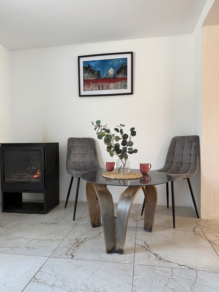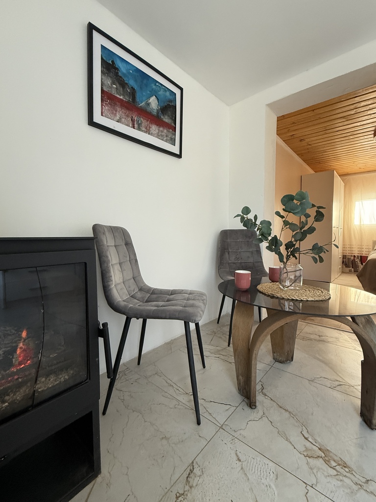 pokój dzienny z kominkiem
