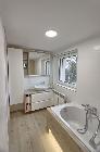 Na podłogach panele oraz kafle, ściany gładzone, pomalowane na biało.
