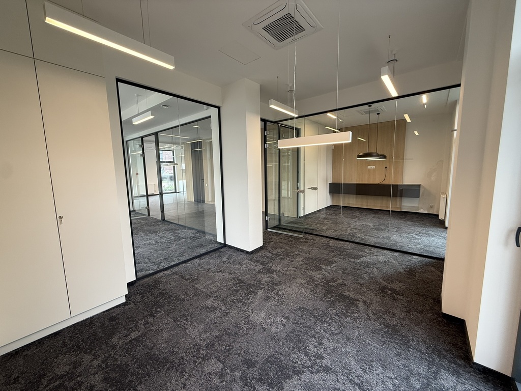 - przestronna sala główna z możliwością podziału, kilka przeszklonych pomieszczeń (biura/salki), zaplecze socjalne